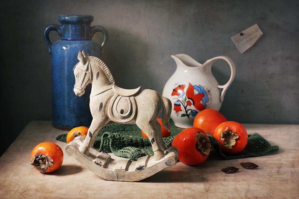 натюрморт, кувшин, хурма, фрукты, игрушка, лошадь, Tatyana Karachkova