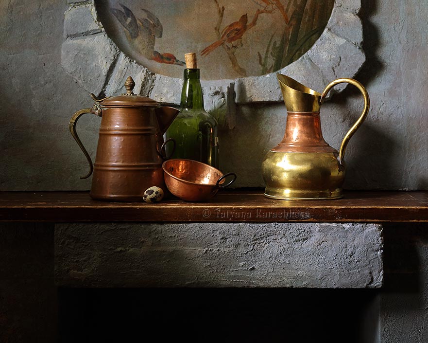 натюрмортапельсиныкаминполкакувшин