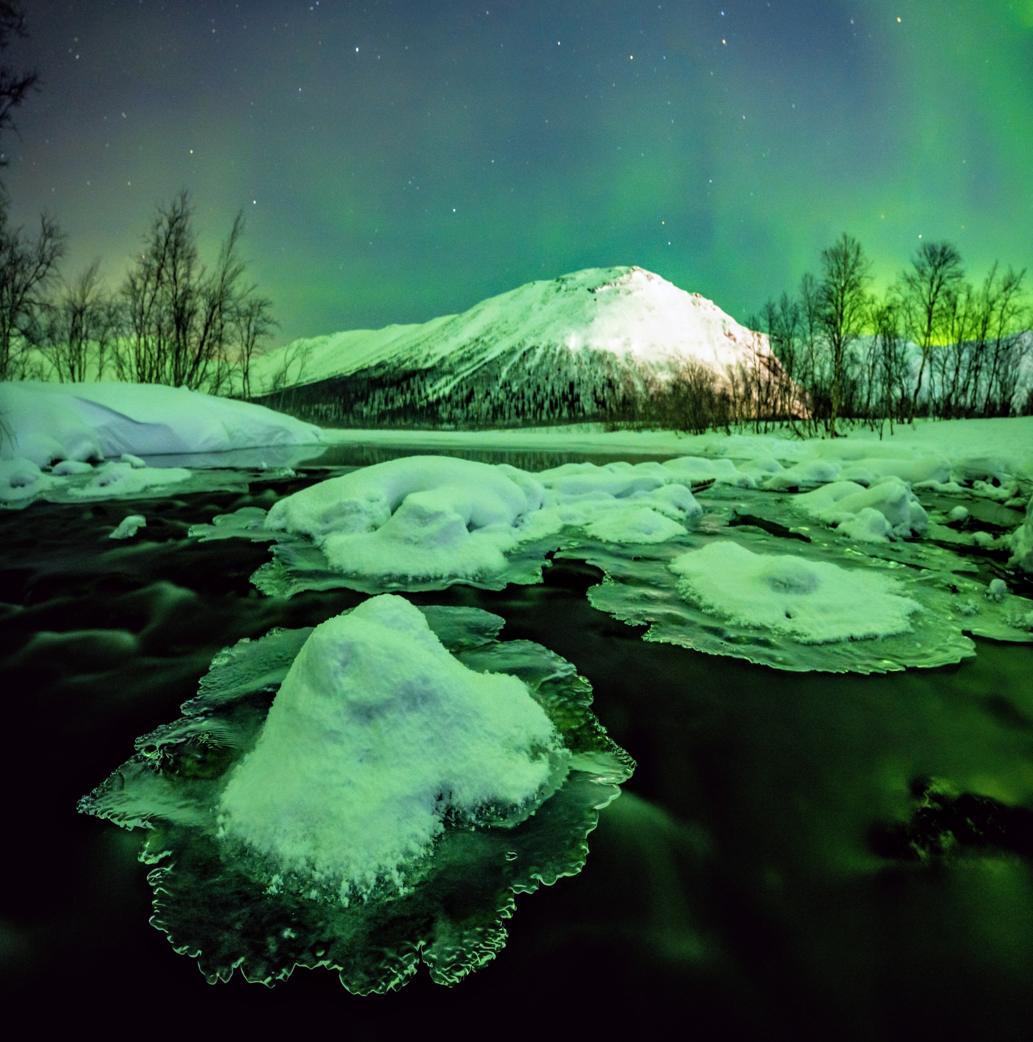 Вы снимаете с удивительной точностью — ледяные медузы на фоне северного сияния выглядят почти живыми. Красиво, атмосферно, как будто природа сама создала эту сцену.
