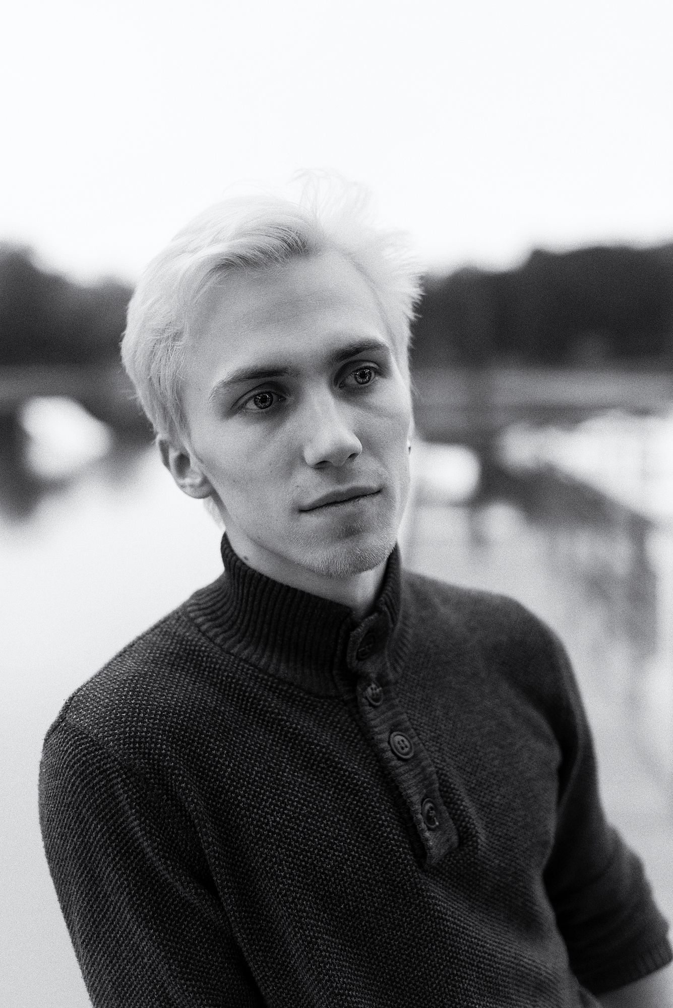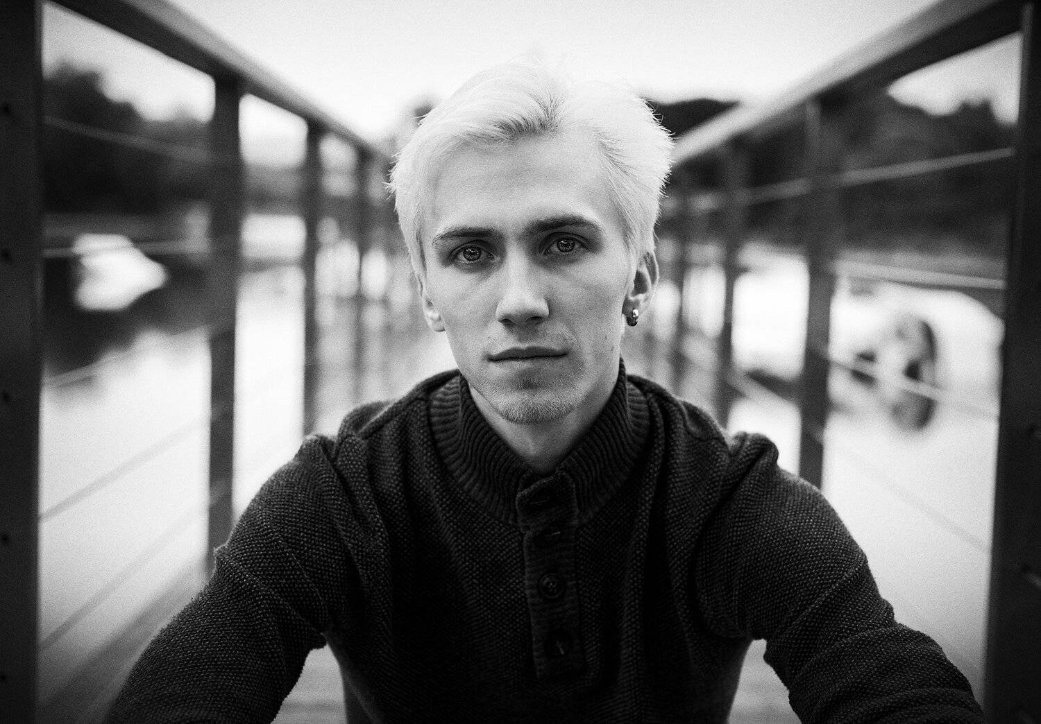 портретпортретная фотографиямужской портретестественный светна улицепрогулкафотосессиячбчерно-белая фотография