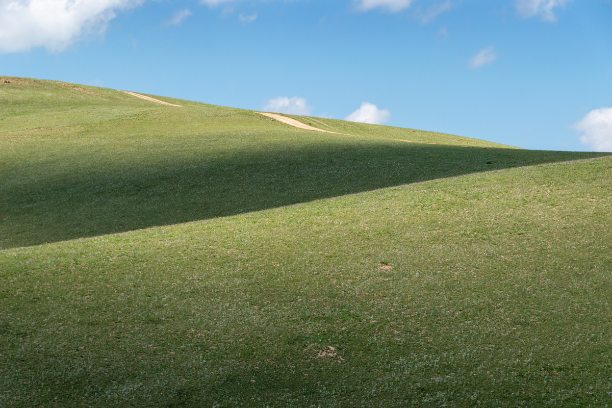 внутренний тянь-шань, горы, дорога, небо, трава, свет и тени, минимализм, Кетова Вера