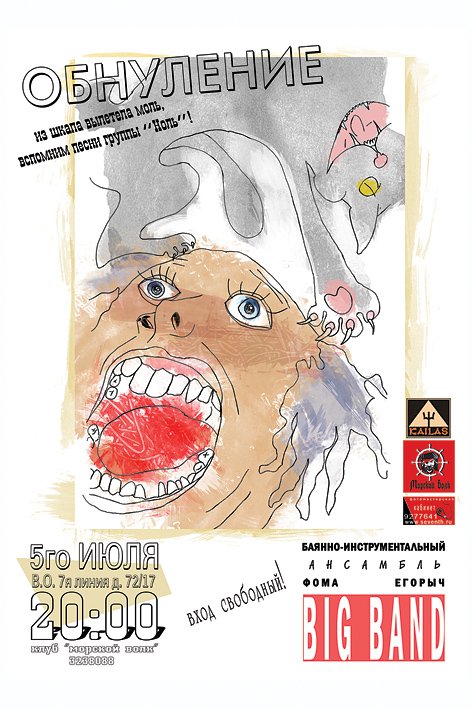 баянно - инструментальный ансамбль Фома Егорыч Big Band, фотомастерская Кабинет 19, клуб "морской волк" и все все все друзья, которые любят и ценят шедевры созданные группой "Ноль" соберутся 5го июля, в восемь часов вечера и в камерной атмосфере живого звука споют. споют всё. из Ноля.