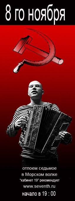 Грандиозный концерт Фомы Егорыча в полном концертном составе пройдёт на территории клуба «Морской волк». И так – встречаемся 8го ноября. В 19:00. На углу малого проспекта Васильевского острова и Седьмой линии (его же).