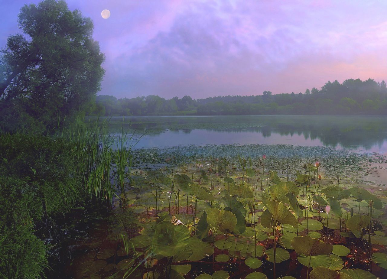 Озеро,река,расссвет,кувшинки,луна,вода,природа,пейзаж, Хагалас Мириам