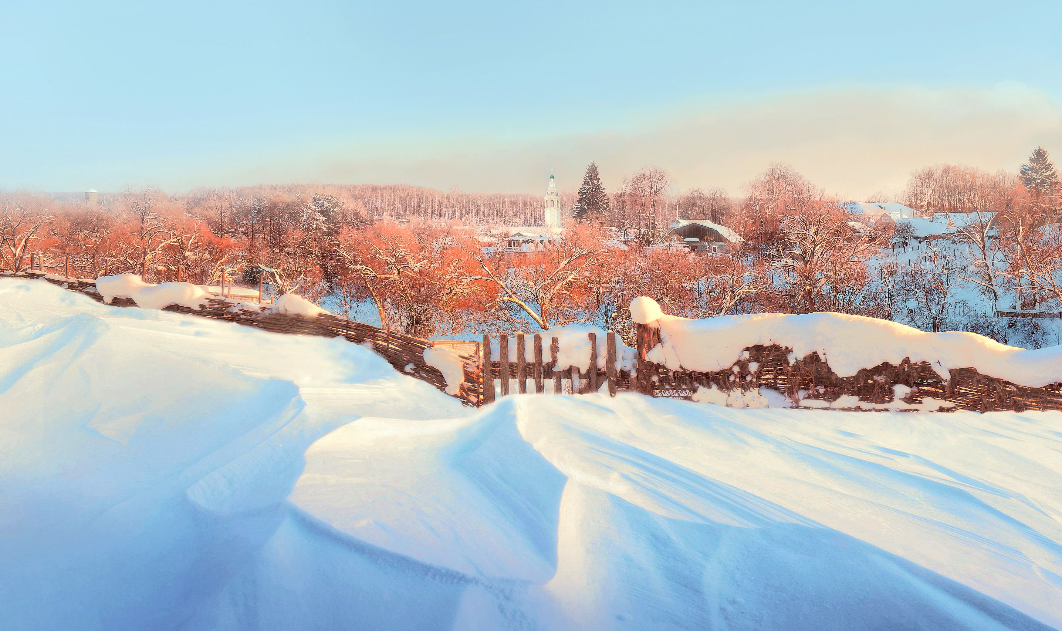 снег,зима,рассвет,сугробы,деревня,пейзаж, Хагалас Мириам