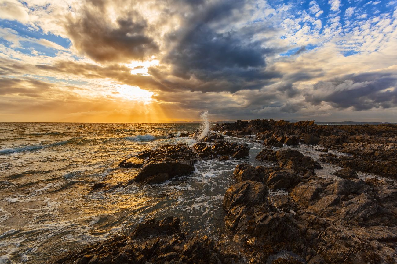 Ennél a kiemelkedő alkotásnál Rashid Khaidanov a sziklás tengerpart masszívitását, a viszonylag erősen hullámzó tenger csapdosását teljesen meglágyította a naplemente aranyló színével, a felhők különböző színeivel. Az alkotás nagysága azonban abban van, hogy a napsugarak felől súlyos üzenet érkezik. Ez az üzenet jól látható abban a sziklák között feltörő vízoszlopban, ami egy jelentős, pozitív változást fog eredményezni. Az alkotás világszínvonalú!