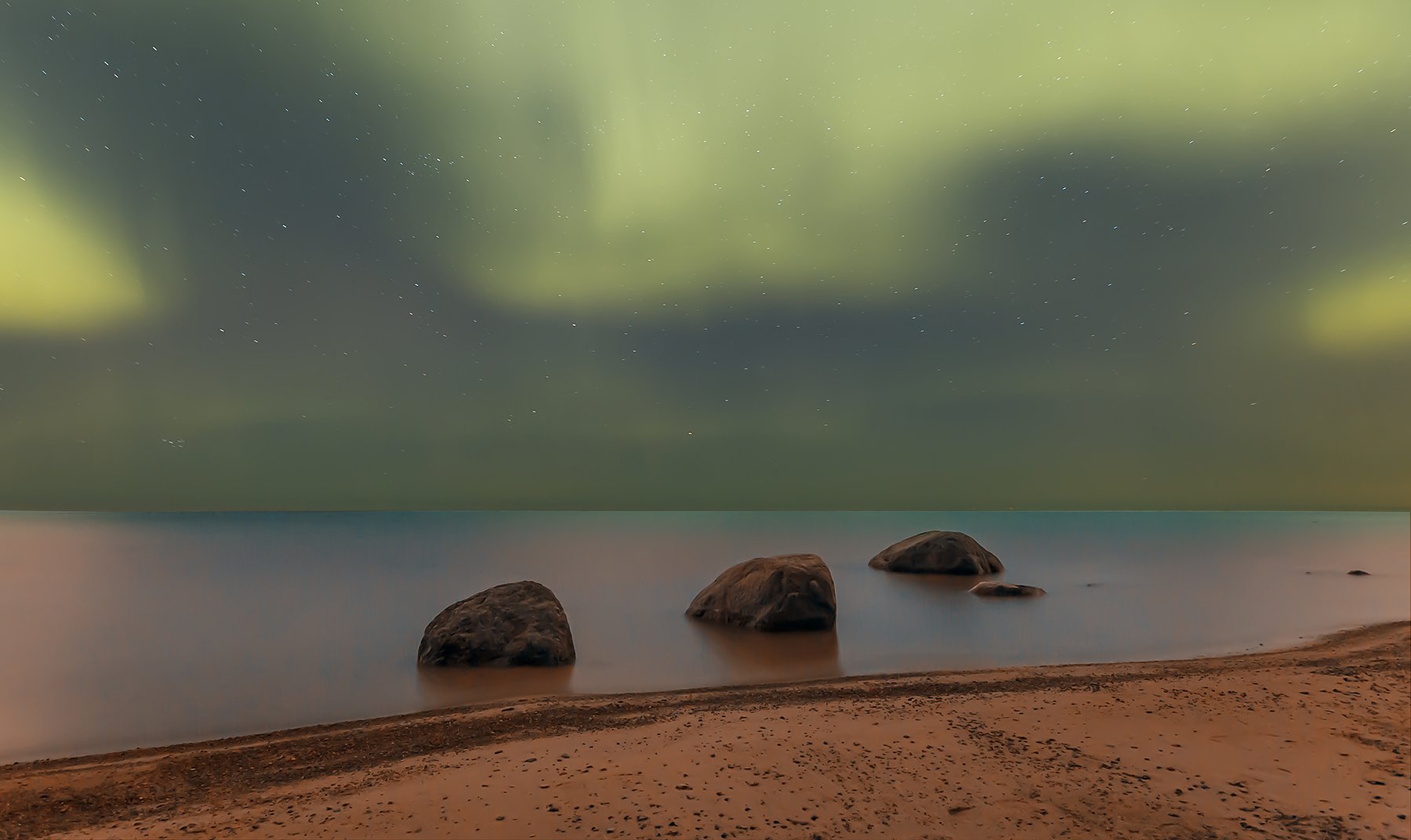 aurora borealis, rocks, Kljuchenkow Aleksandr