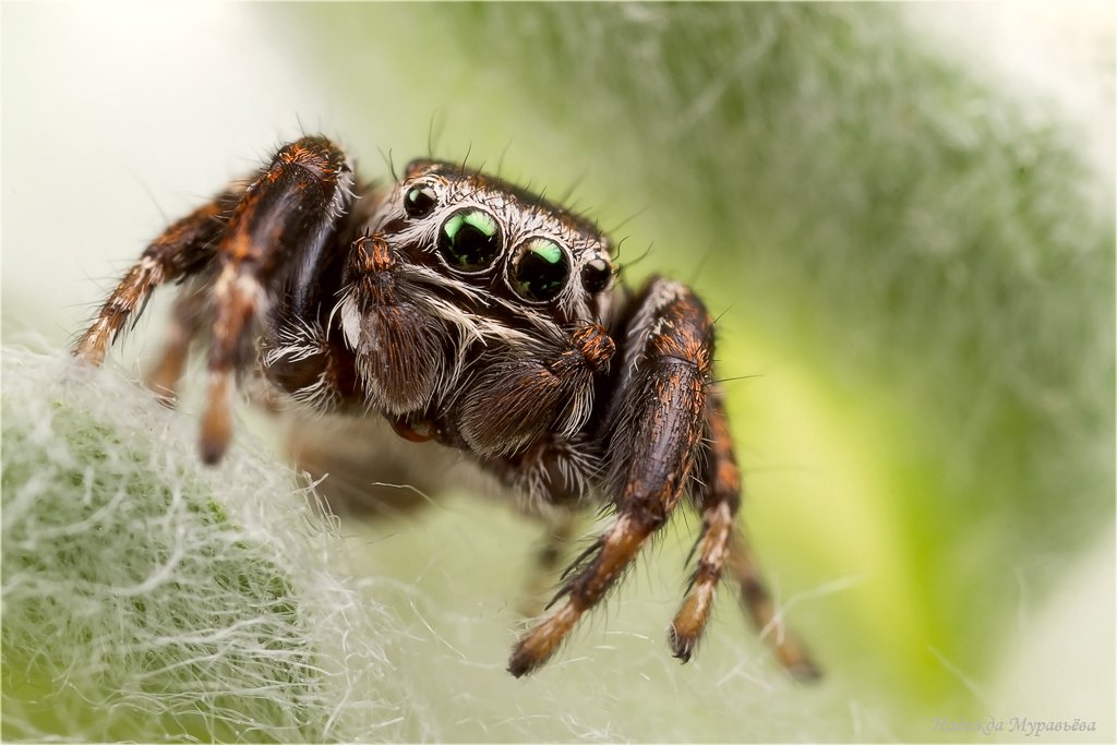 Вообще-то, "катаются": у скакунчика самые крупные глаза - подвижные, что позволяет ему точно рассчитать расстояние до жертвы и настичь её в один прыжок.