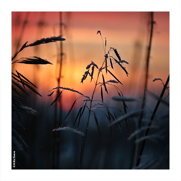 зима, закат, травы, луг, поле, Milla Sineva