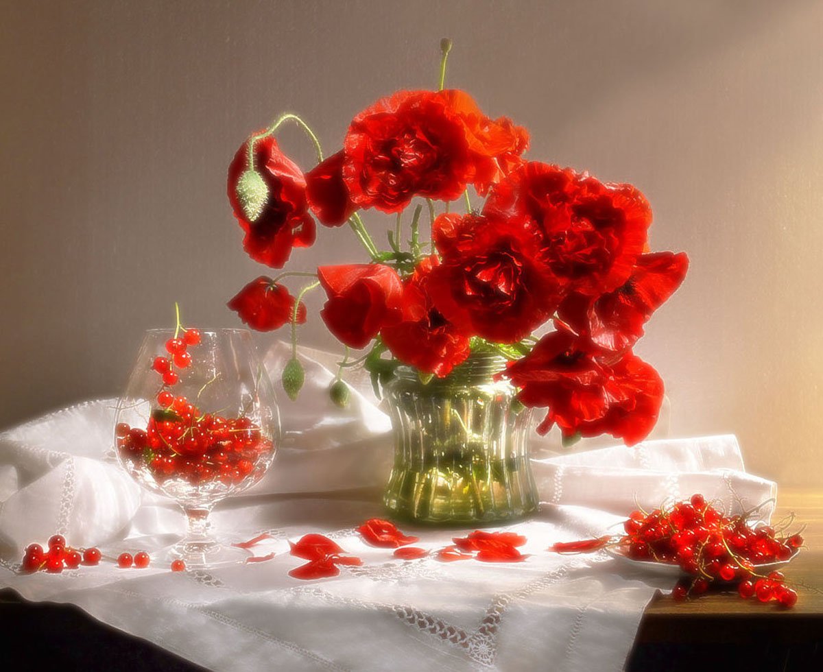 still life,натюрморт, фото натюрморт, цветы, маки, лето, июль, красная смородина, Колова Валентина