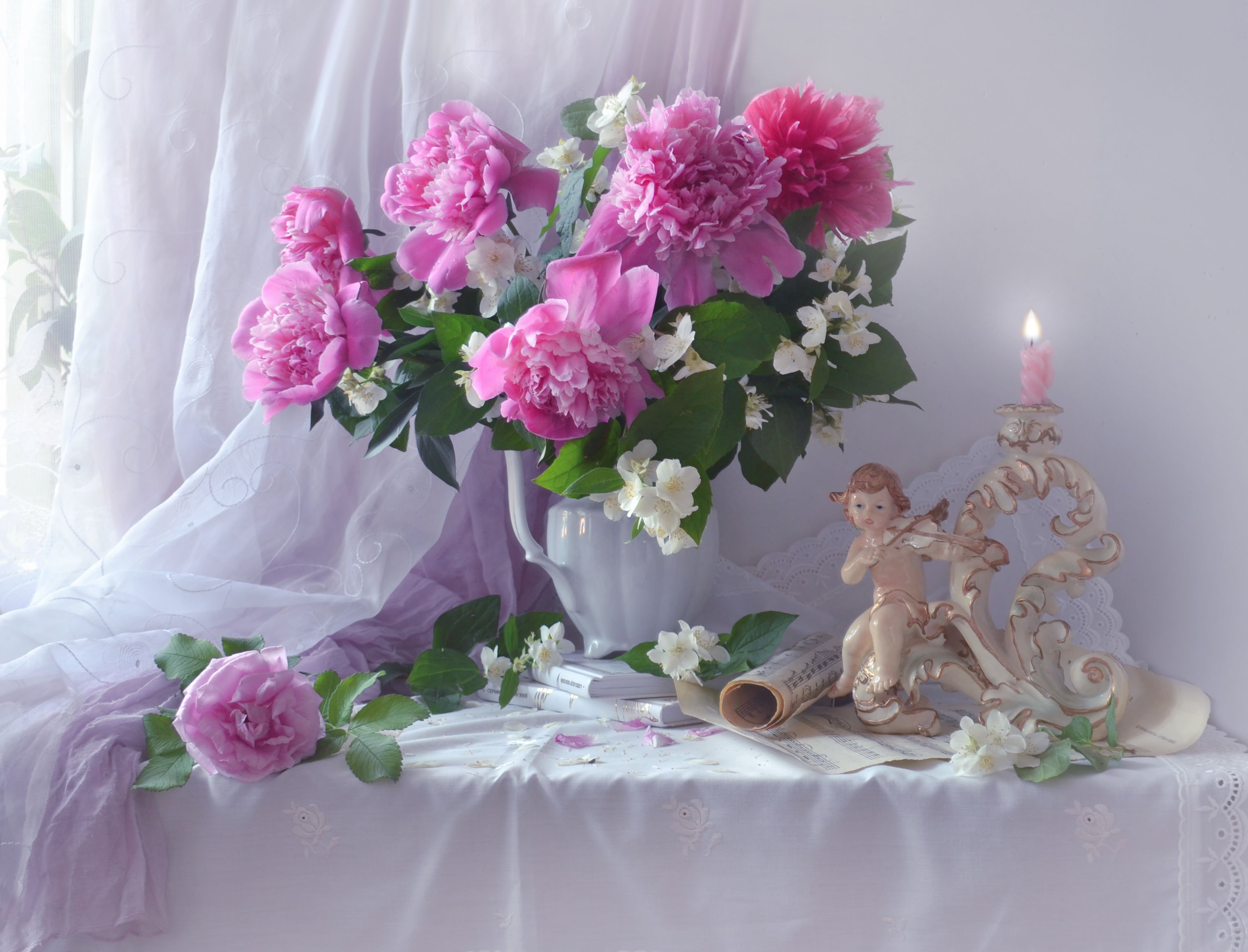 still lif,  натюрморт, цветы, фото натюрморт, свеча, розы, подсвечник, пионы, ноты, натюрморт, настроение,лето, июнь, жасмин, Колова Валентина
