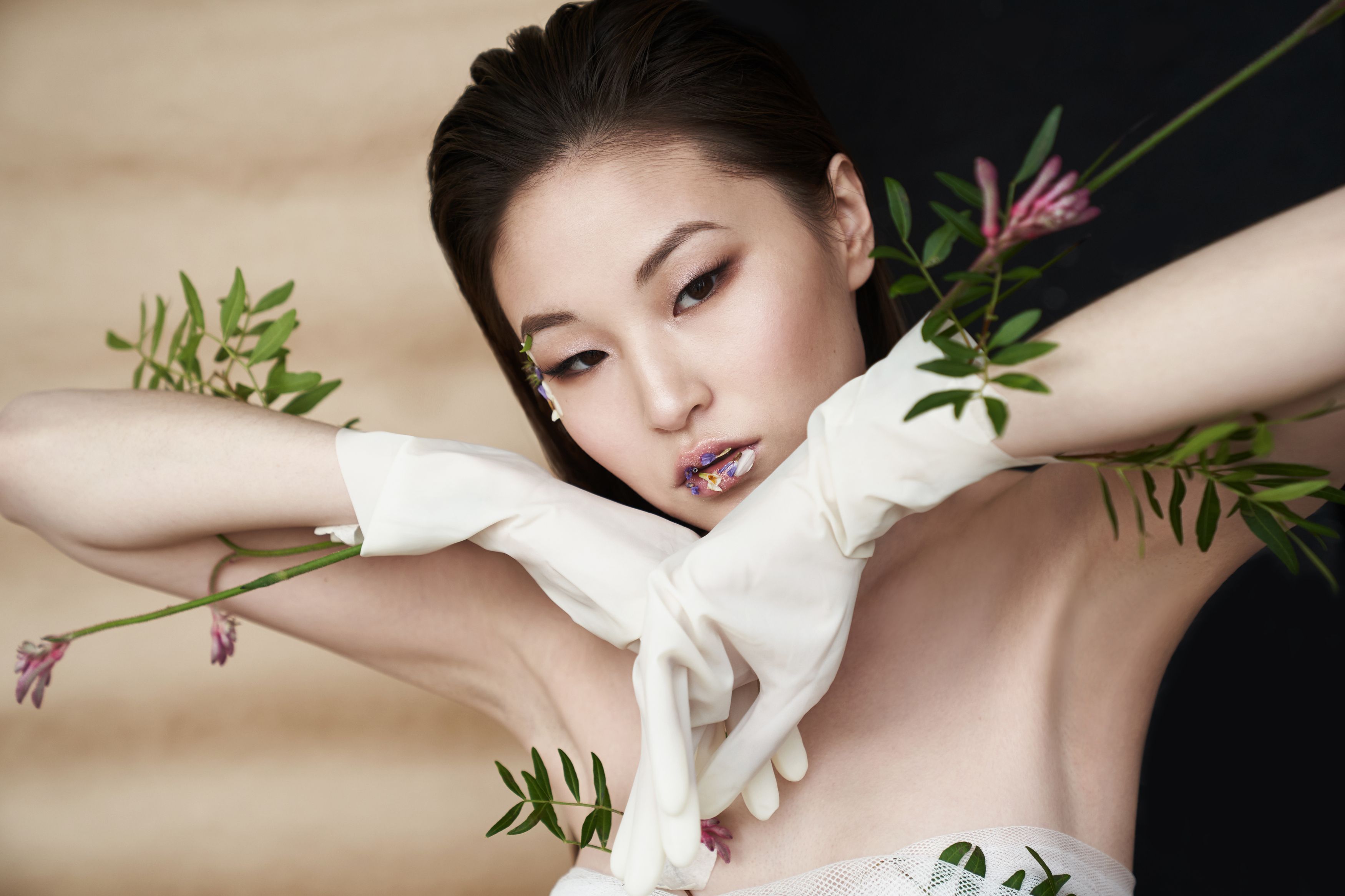 весна, перчатки, цветы, азиатка, Дарья Комарова