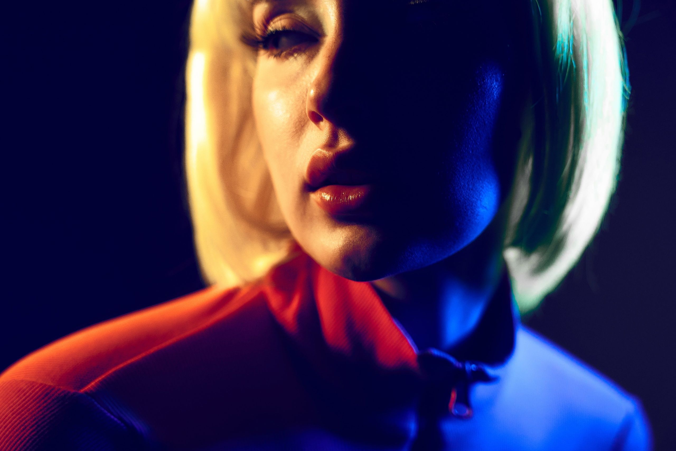 потрет, девушка, крупный план, синий, желтый, ночь, Дарья Комарова