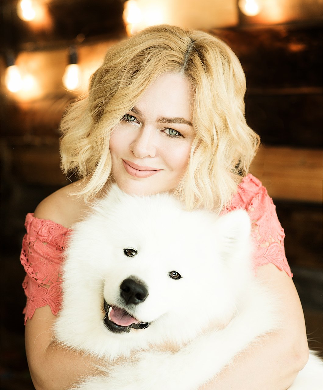 женщина, красивая, собака, улыбка, глаза, портрет, Дарья Комарова