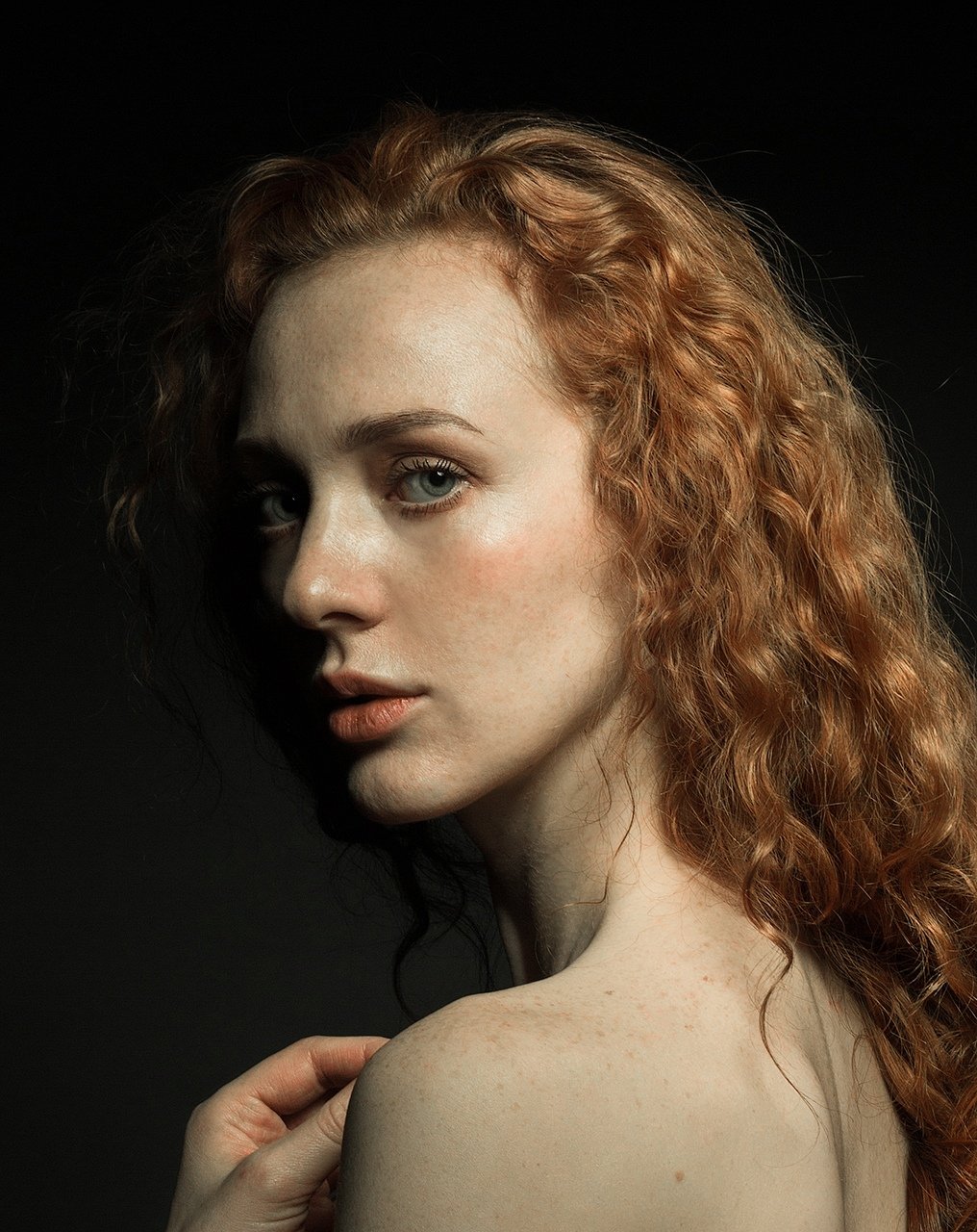 модель, девушка, рыжая, волосы, кудри, картина, губы, глаза, локоны, красивая, женщина, портрет, Дарья Комарова