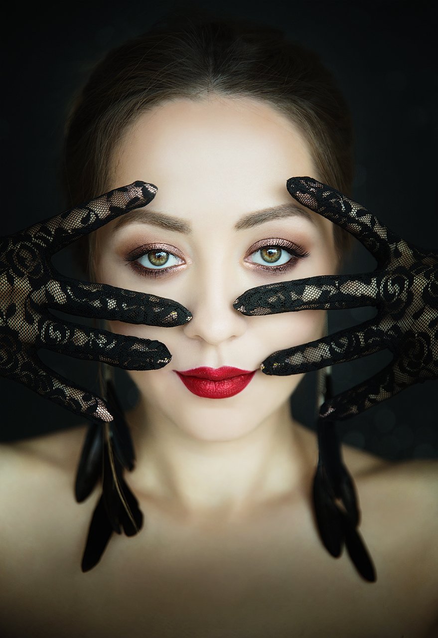 девушка, перчатки, серьги,глаза, губы, красные, Дарья Комарова