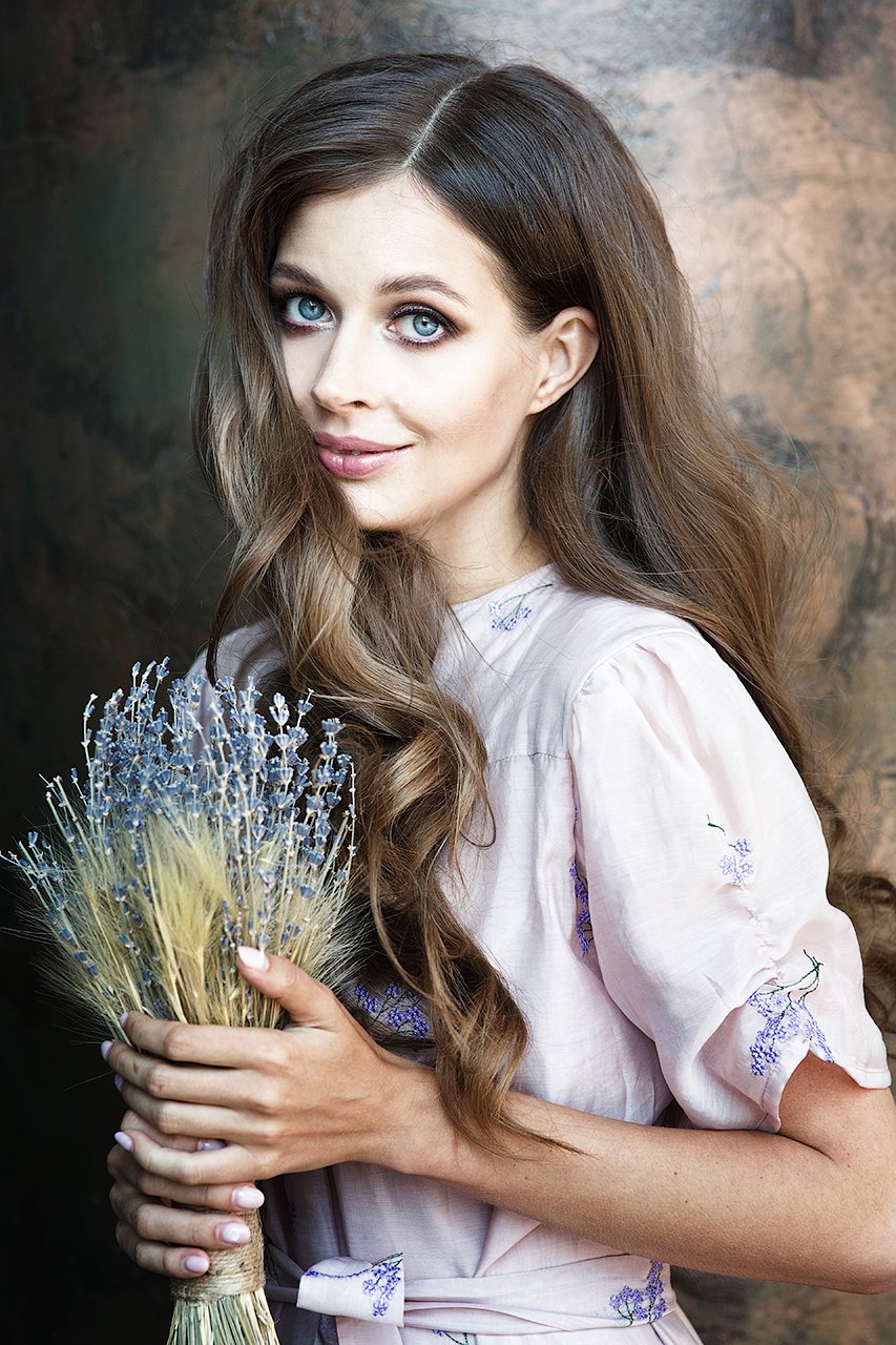 девушка, красивая, лаванда, кудри, локоны, портрет, Дарья Комарова