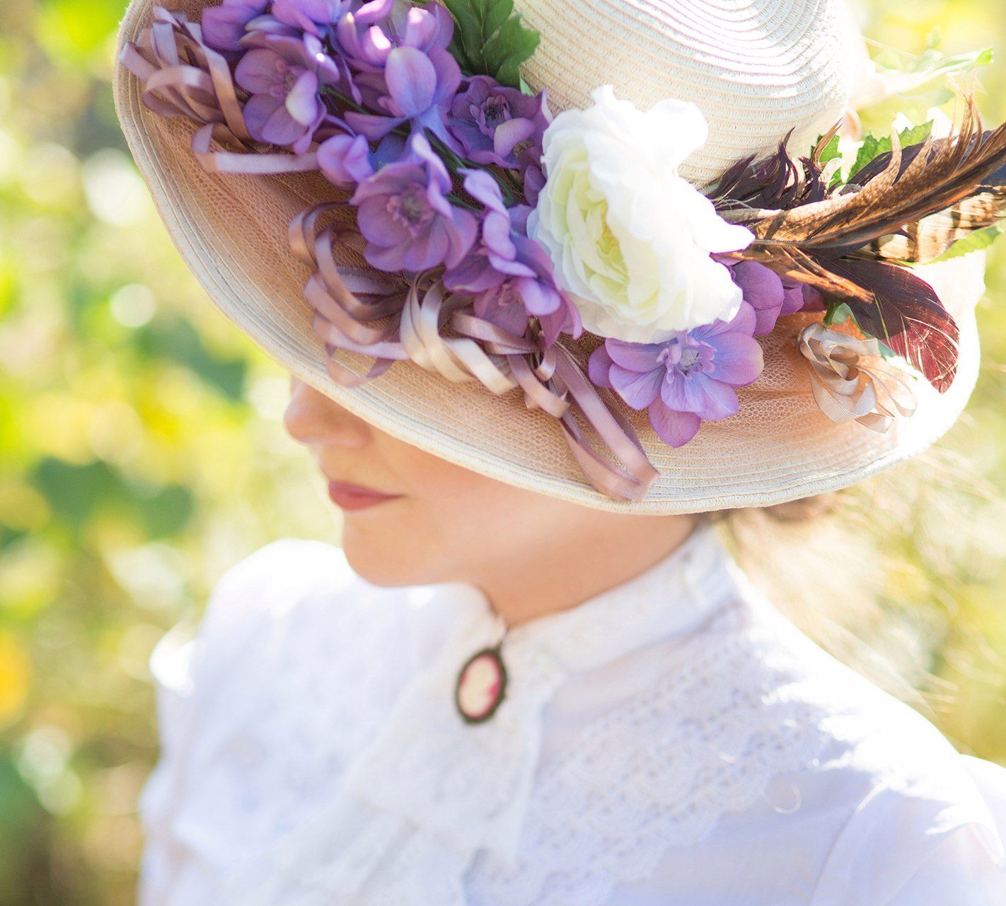 Красивая девушка, шляпа, история, костюм, постановка, брошь, цветы , Дарья Комарова