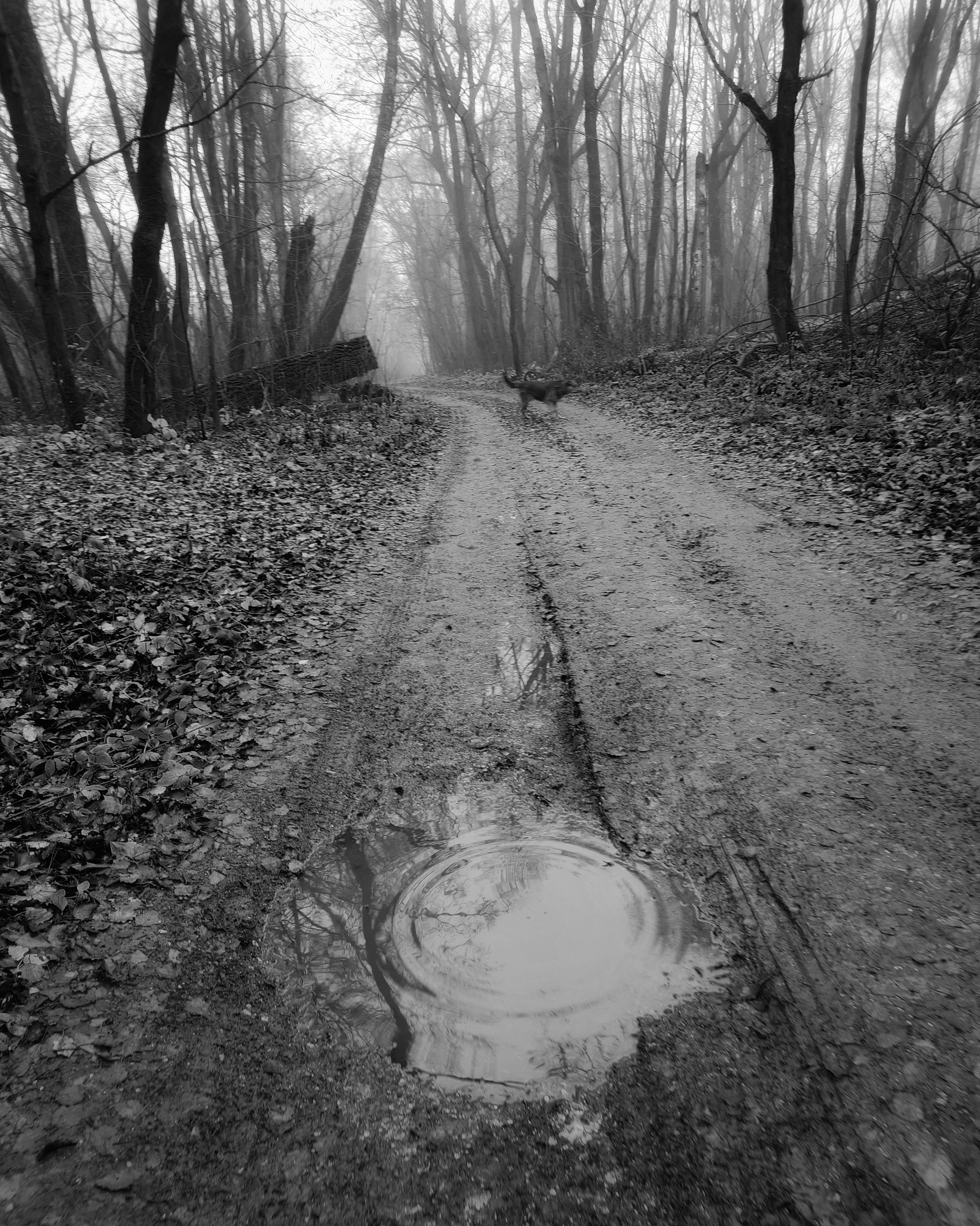 Светлана, спасибо за снимок. Туман в лесу — как будто время замедлилось. Пусть дорога ведёт в неизвестность, но этот лужный круг в центре — почти как глаз, смотрящий на тебя. Чёрно-белое решение подчёркивает текстуру, и всё это — тихо, но остро. 🖤