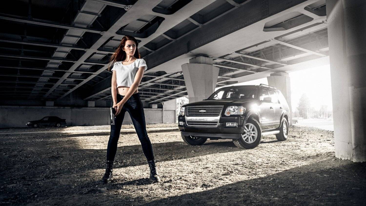 CarDangerGunMovieScenicДевушкаМашинаПистолет