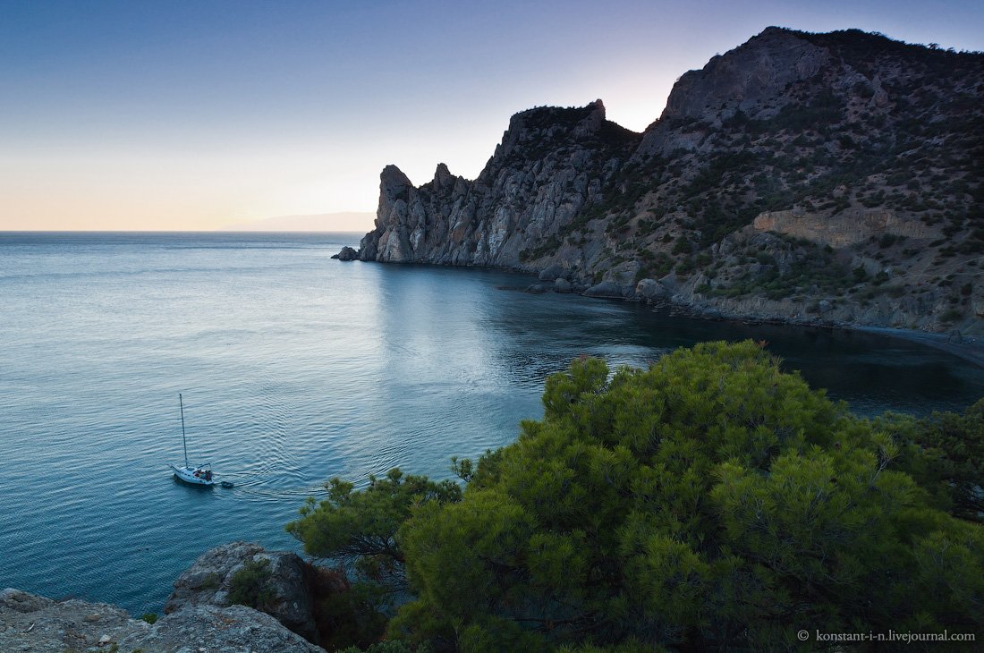 пейзаж, закат, вечер, море, горы, бухта, крым, новый свет, Konstant-i-n