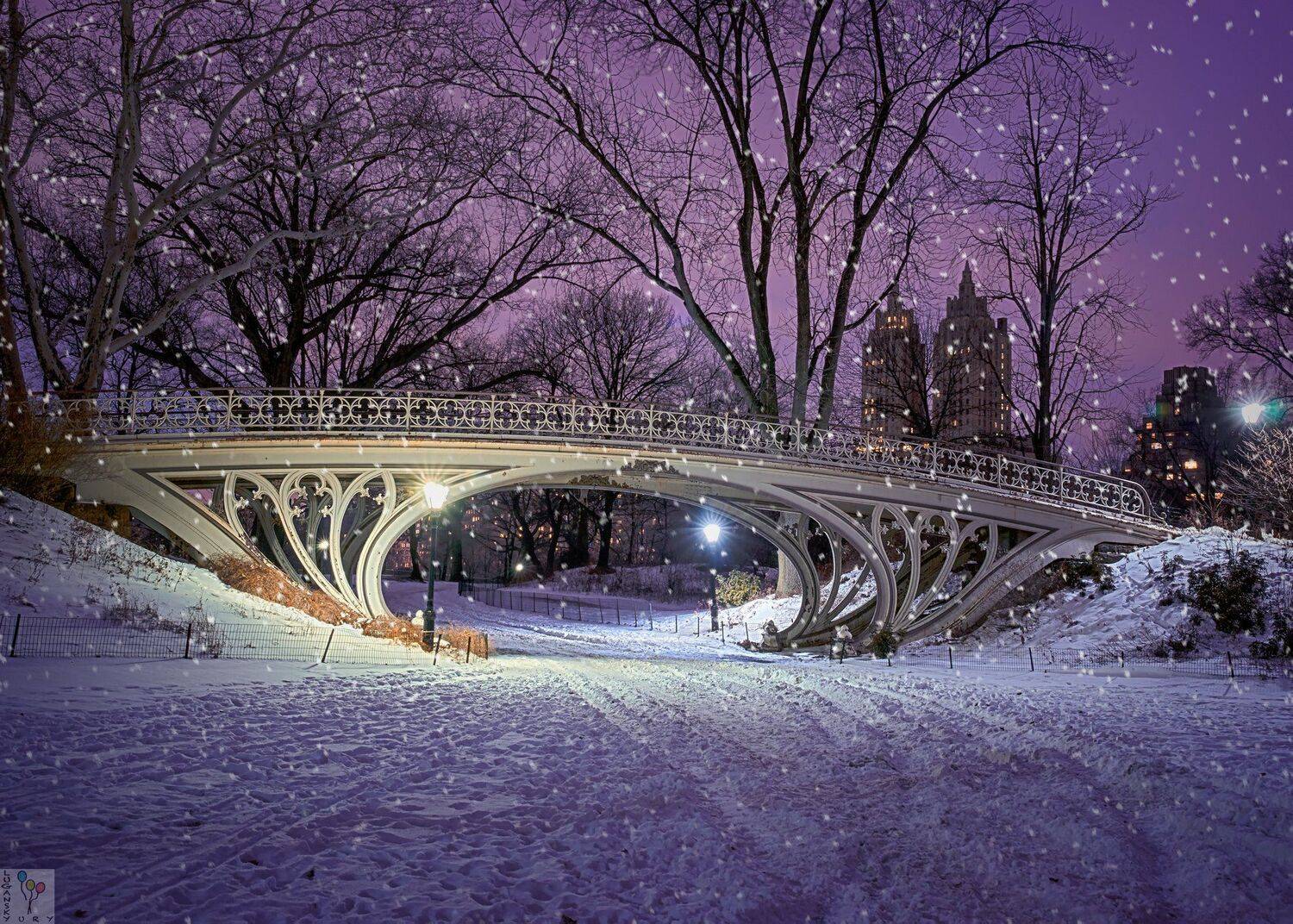Снегопад в старом парке