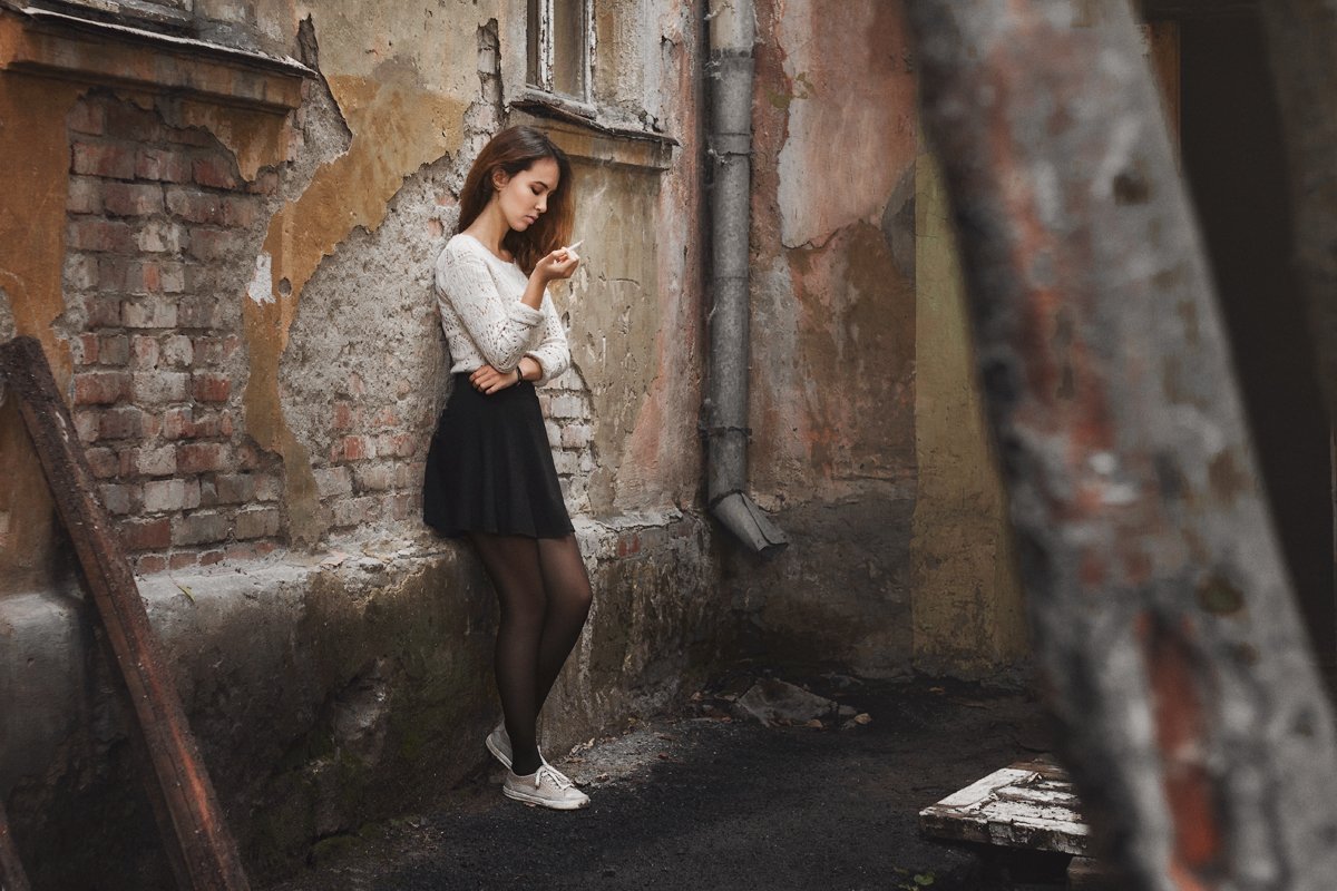 girl,ivankopchenov,natural light,outdoor,portrait,иванкопченов,портрет,портрет девушки,двор, сигарета, печаль, грусть, одиночество, осень, Иван Копченов