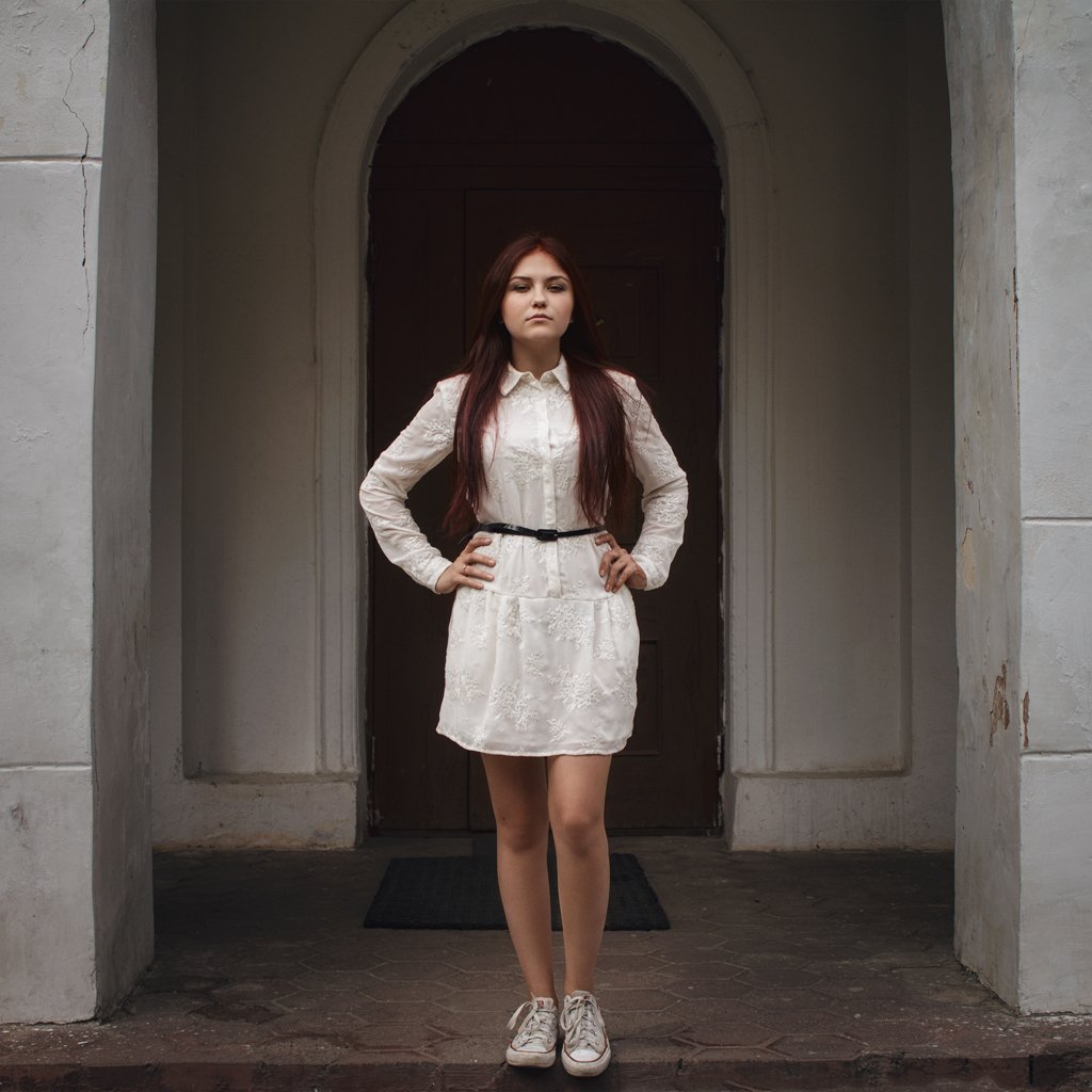 dress,girl,ivankopchenov,natural light,outdoor,portrait,иванкопченов,портрет,портрет девушки,здание,арка,дверь,стена,дом,кеды,платье,лето, Иван Копченов