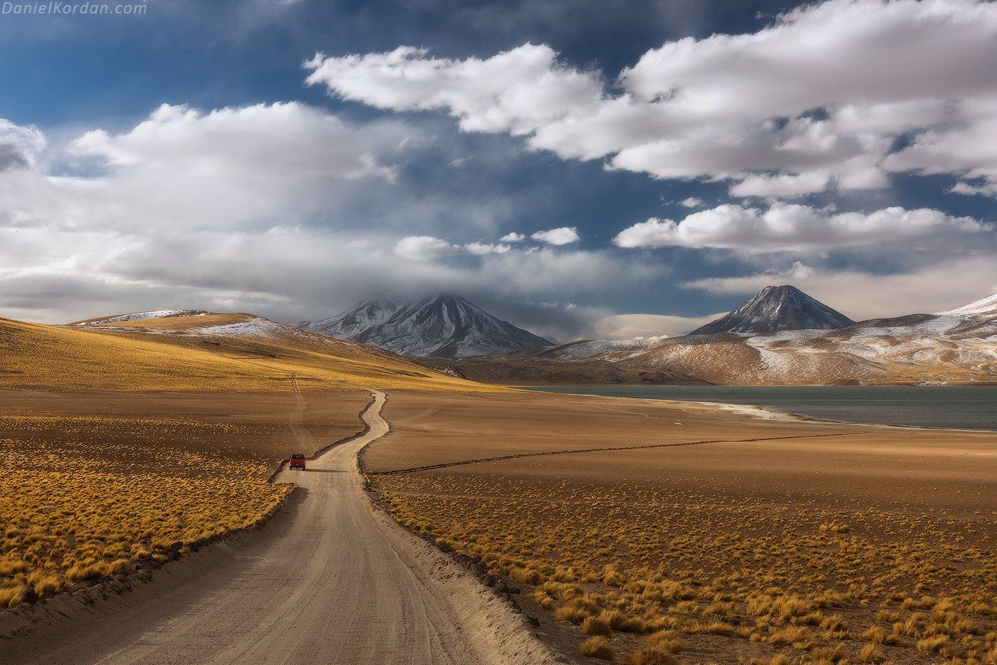 На третий день нашего путешествия по Атакаме мы добрались до высокогорных лагун Мисканти и Миникес. Высота здесь уже больше четырех тысяч! Организм потихоньку привыкает к такой высоте, хотя нехватка кислорода уже остро чувствуется. Здесь всего небольшая стайка фламинго, но зато шапки высоких вулканов великолепны, с глубоким темным небом над ними.