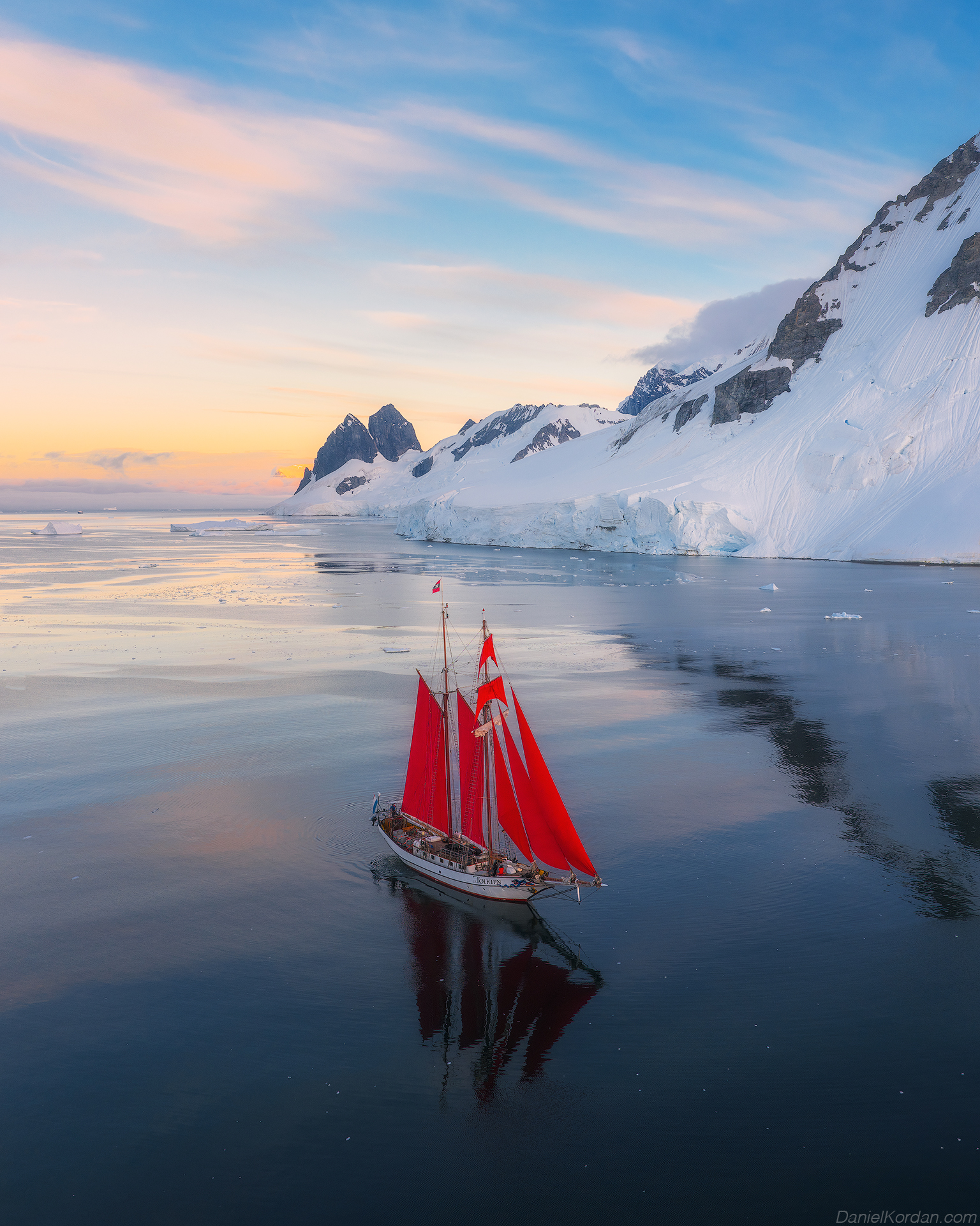 Ваша фотография — настоящий шедевр. Красный парусник на фоне ледяных гор и отражения в воде — сильный, гармоничный образ. Цвета, свет, композиция — всё работает. 🌅⛵