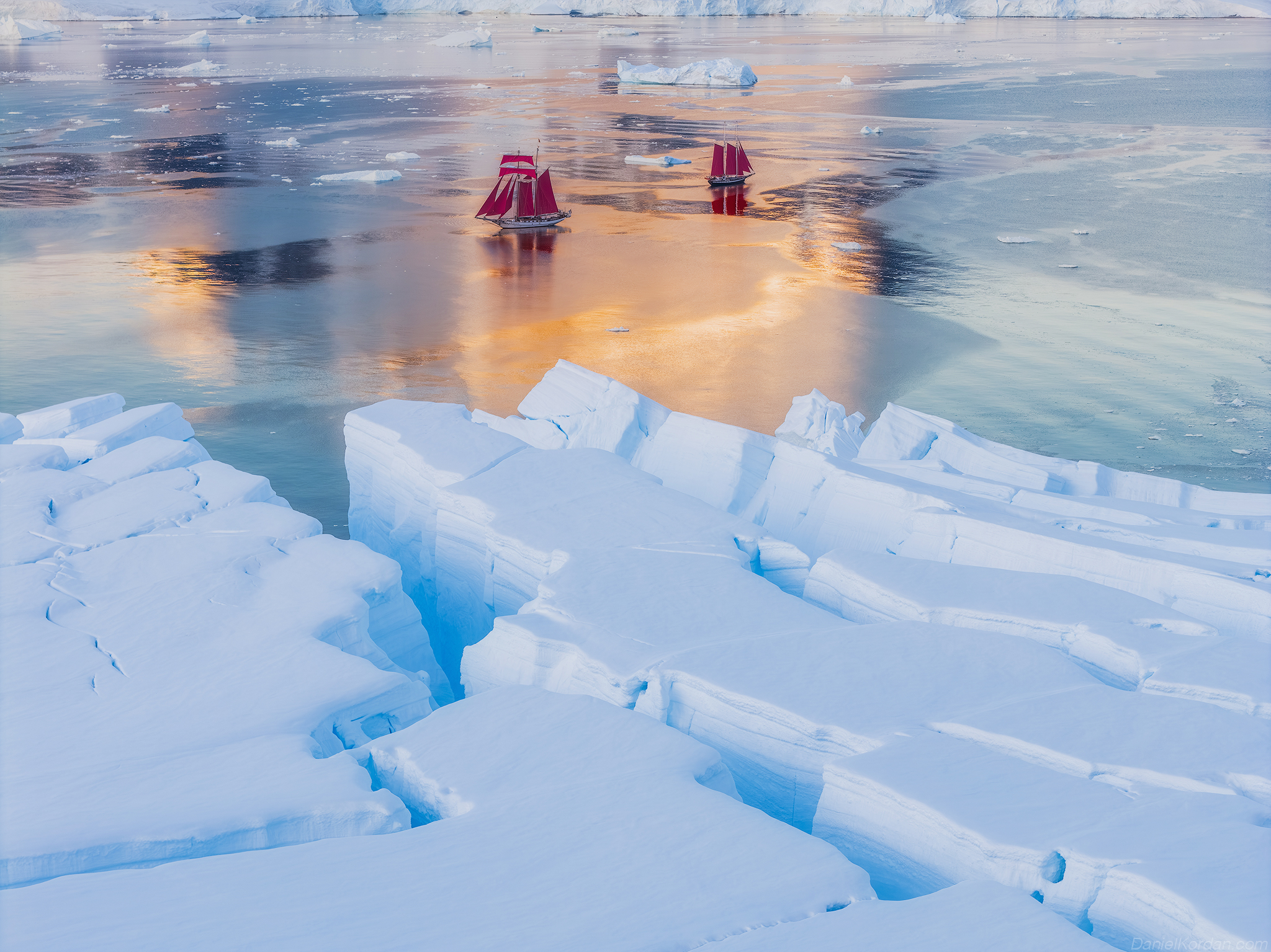 Даниил, отличный кадр — контраст красного паруса и ледяных блоков создаёт сильную композицию. Свет мягко отражается, добавляя глубину. Хорошо, что не перегружено деталями: фокус на главном.