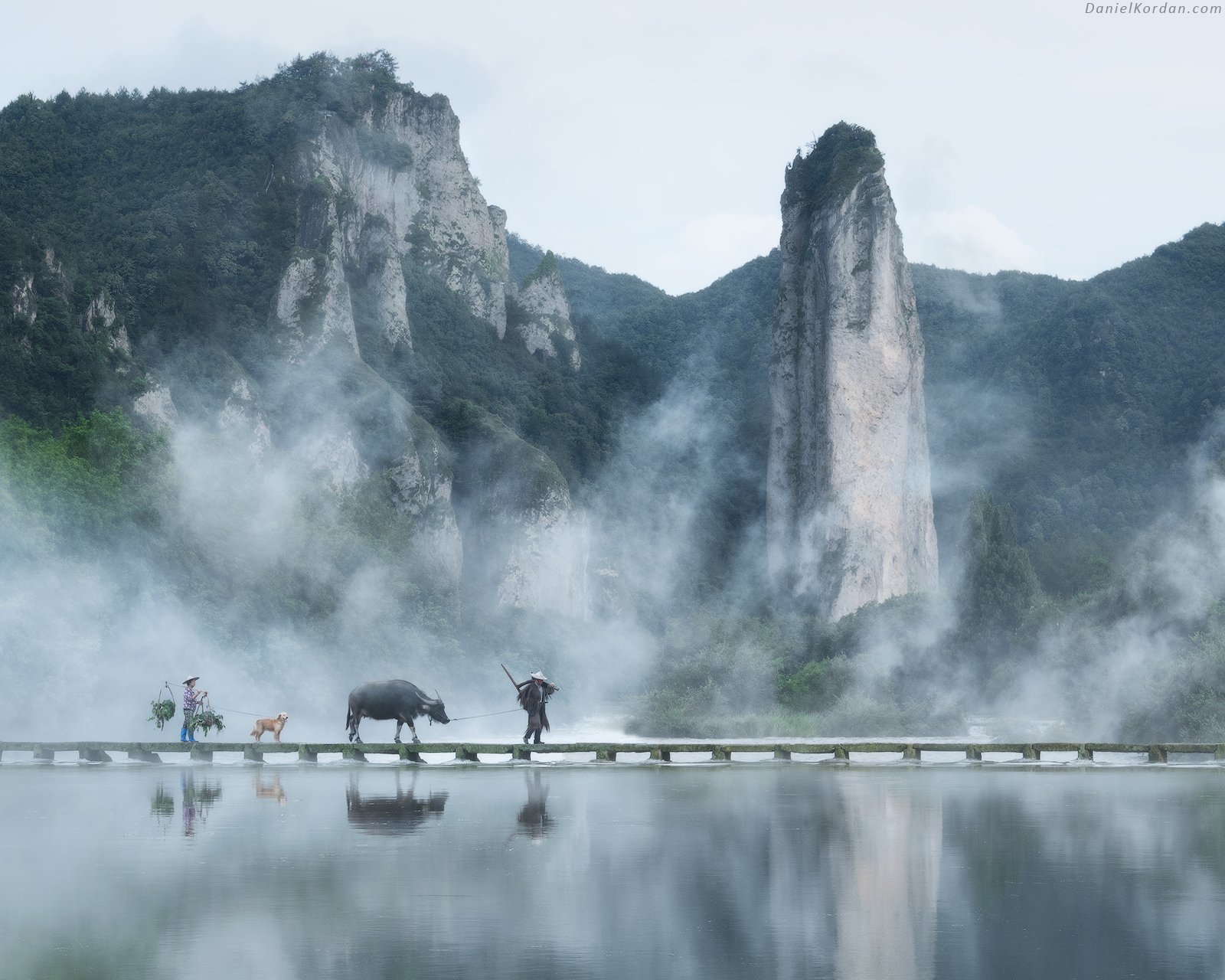 Фотография «Crossing» Даниила Коржонова запечатлела мгновение, когда человеческая деятельность вписывается в величественный ландшафт Китая. Туман, окутывающий горы, создаёт атмосферу тишины и древности, а мост, пересекающий водную гладь, становится символом пути и преодоления. Силуэты людей и животных — не просто объекты, а часть живой картины, где природа и культура сосуществуют в балансе.