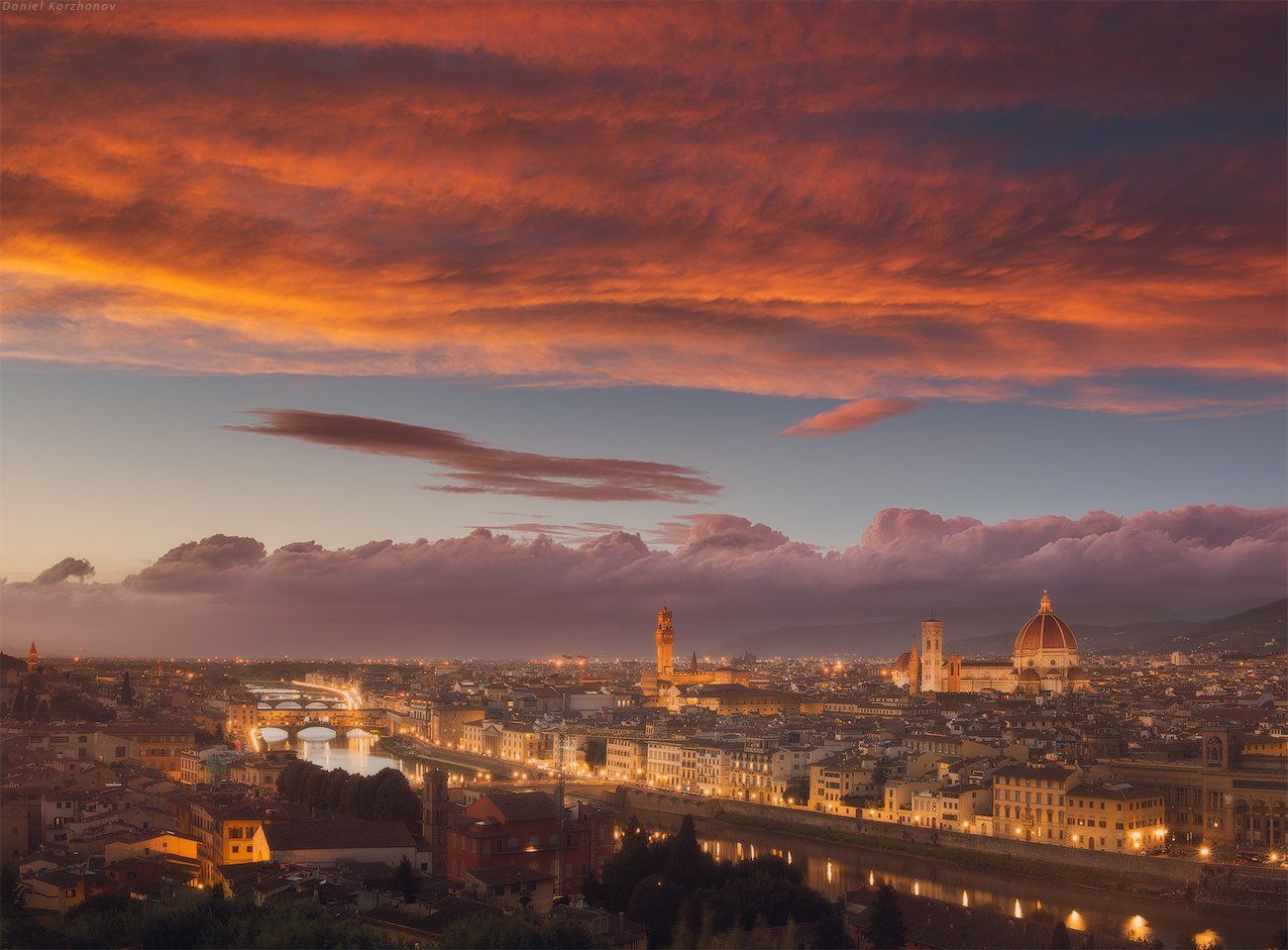 Я бы с радостью, но там уже фонарики и люди толпами в кафе. Попробуем в один из туров поймать более низкое небо. В мае как раз солнце садится в Арно за Понте Веккио.