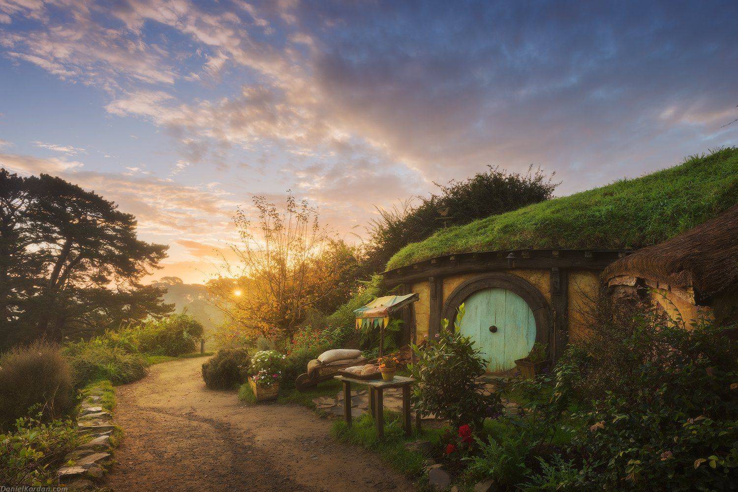 Нам удалось заглянуть к хоббитам в гости на 3 часа на рассвете, и пока они спали крепким сном, встретить невероятно прекрасный рассвет у их уютных домиков в Шире.