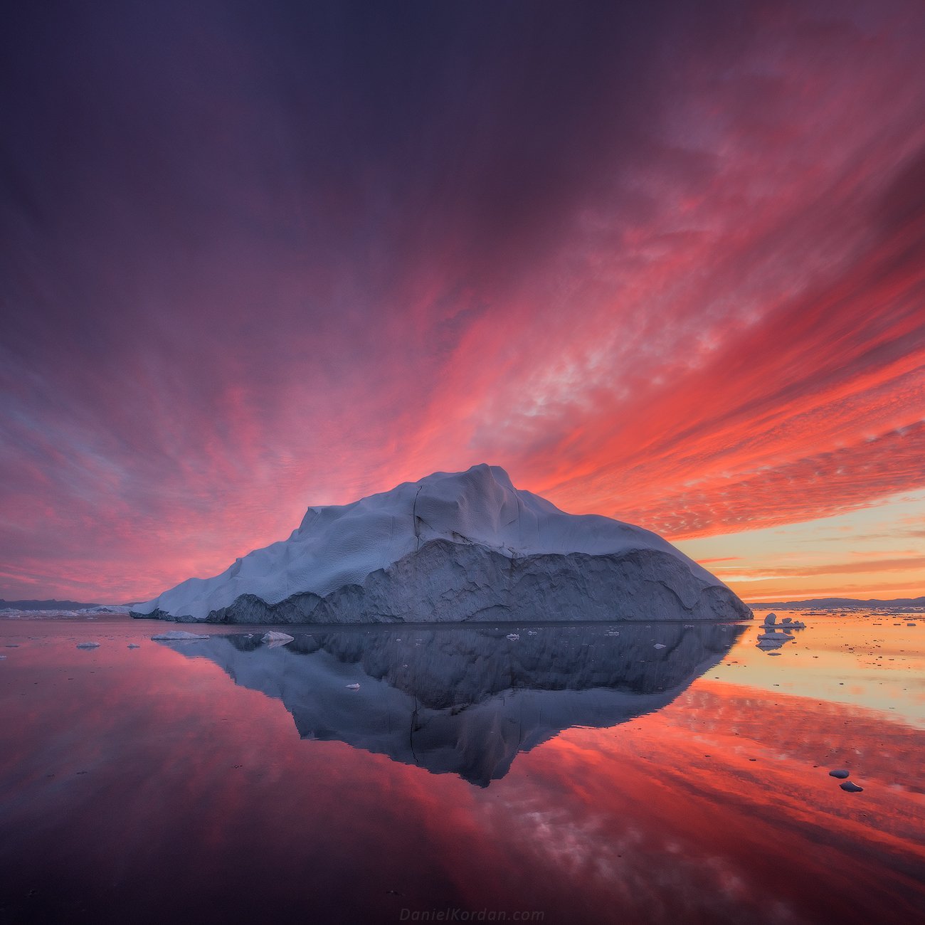 Один из самых удивительных рассветов в моей жизни я встретил со своей группой в Гренландии, во время нашей фотоэкспедиции на яхте "Петр-1". Абсолютная гладь воды, и краски, которые даже сейчас кажутся невероятными.