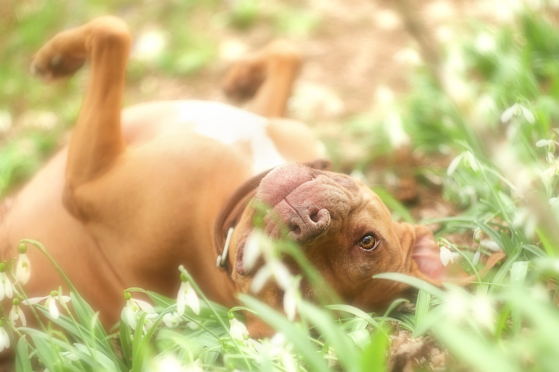 собака, пит, питбуль, подснежники, весна, лес, счастье, взгляд, Ирина Корх
