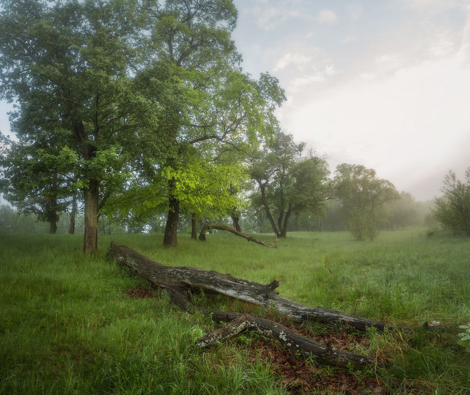 пейзаж природа деревья утро трава, Михаил Корнилов