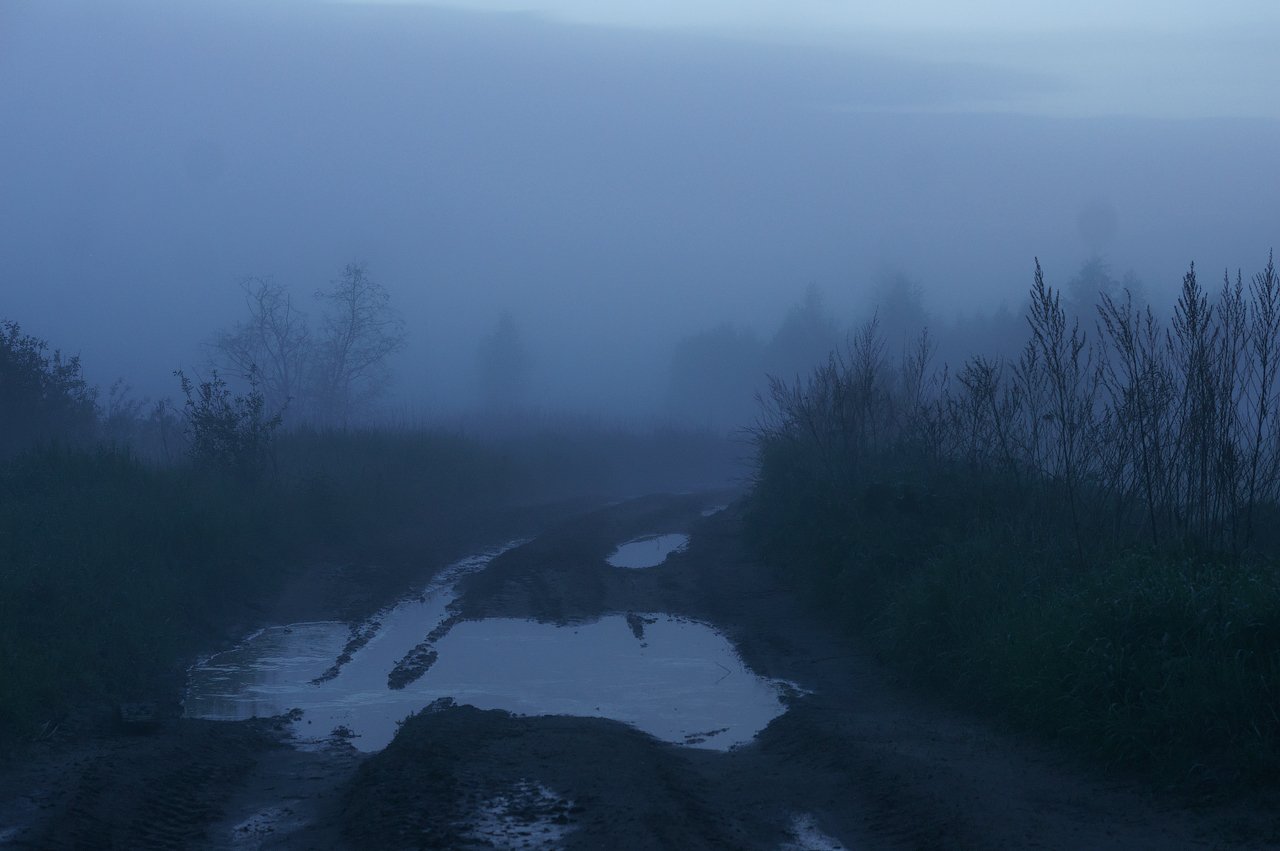 туман дорога лужа ночь деревня Караваево Раменки Глинково Дмитровский Подмосковье Раменье, Королев Саша