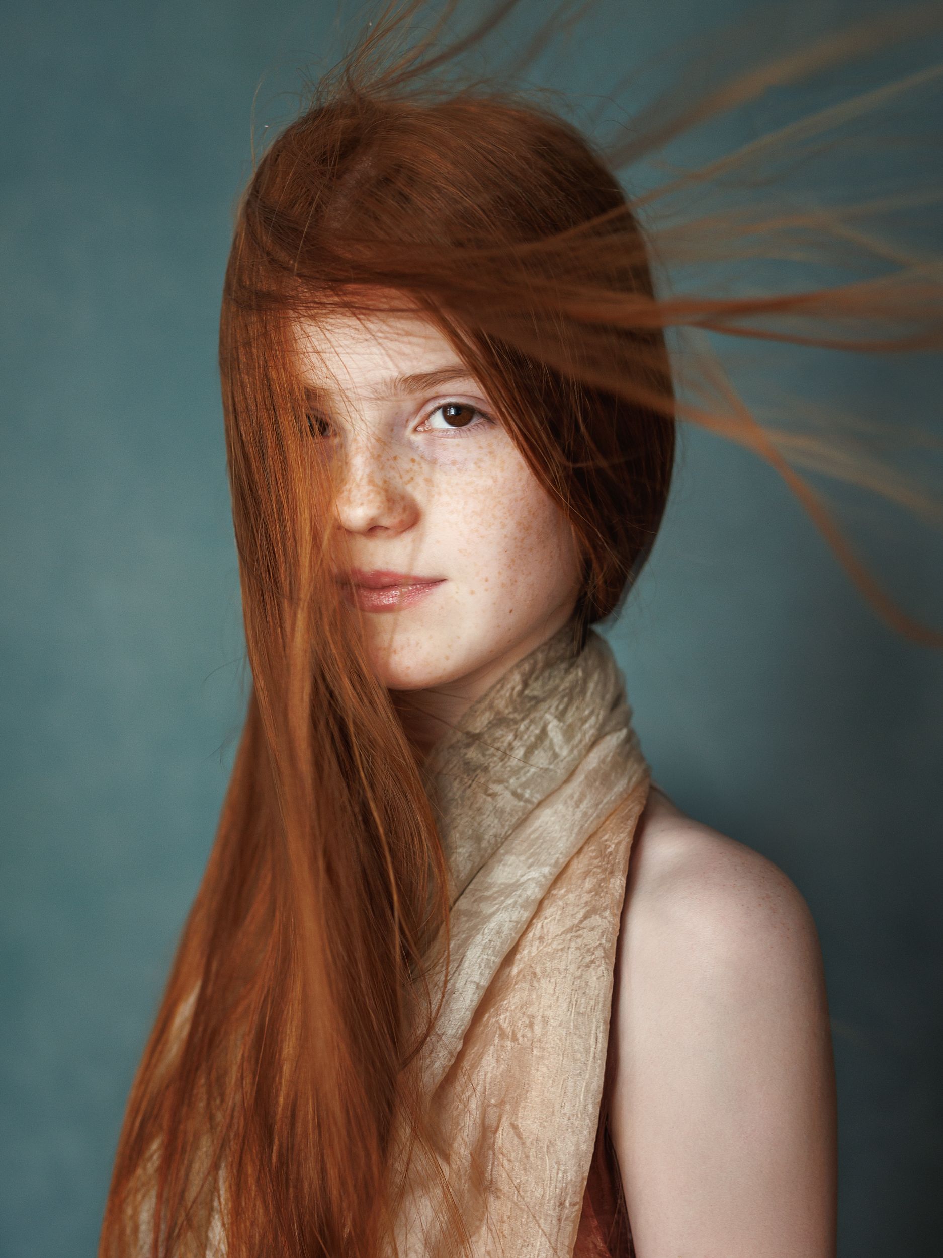 лицо, портрет, рыжая, длинные волосы, цвет, печать, девочка, студия, Ведмеденко Оксана