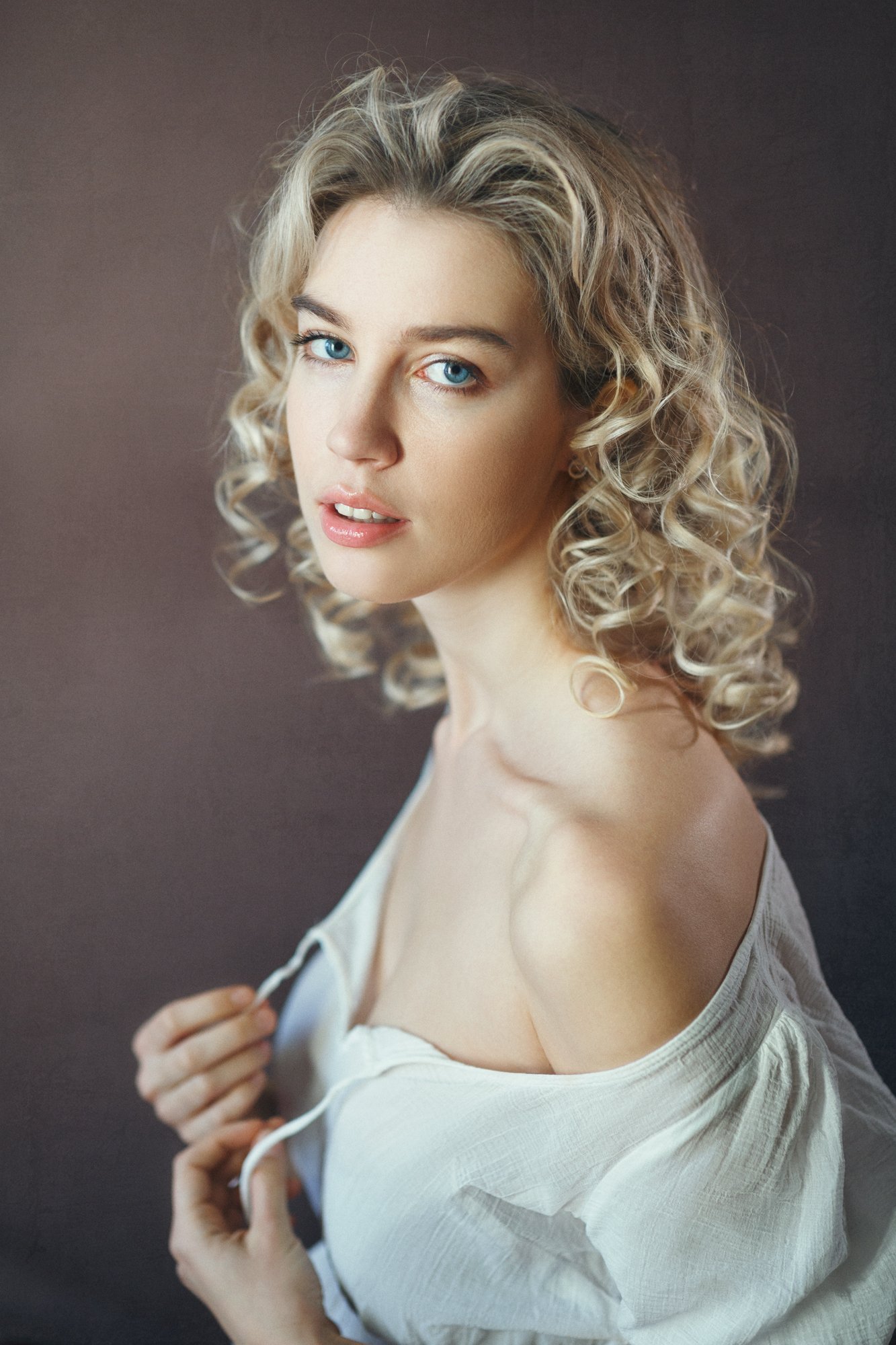 красивая девушка, блондинка, кудряшка, студия, дневной свет, Оксана Ведмеденко