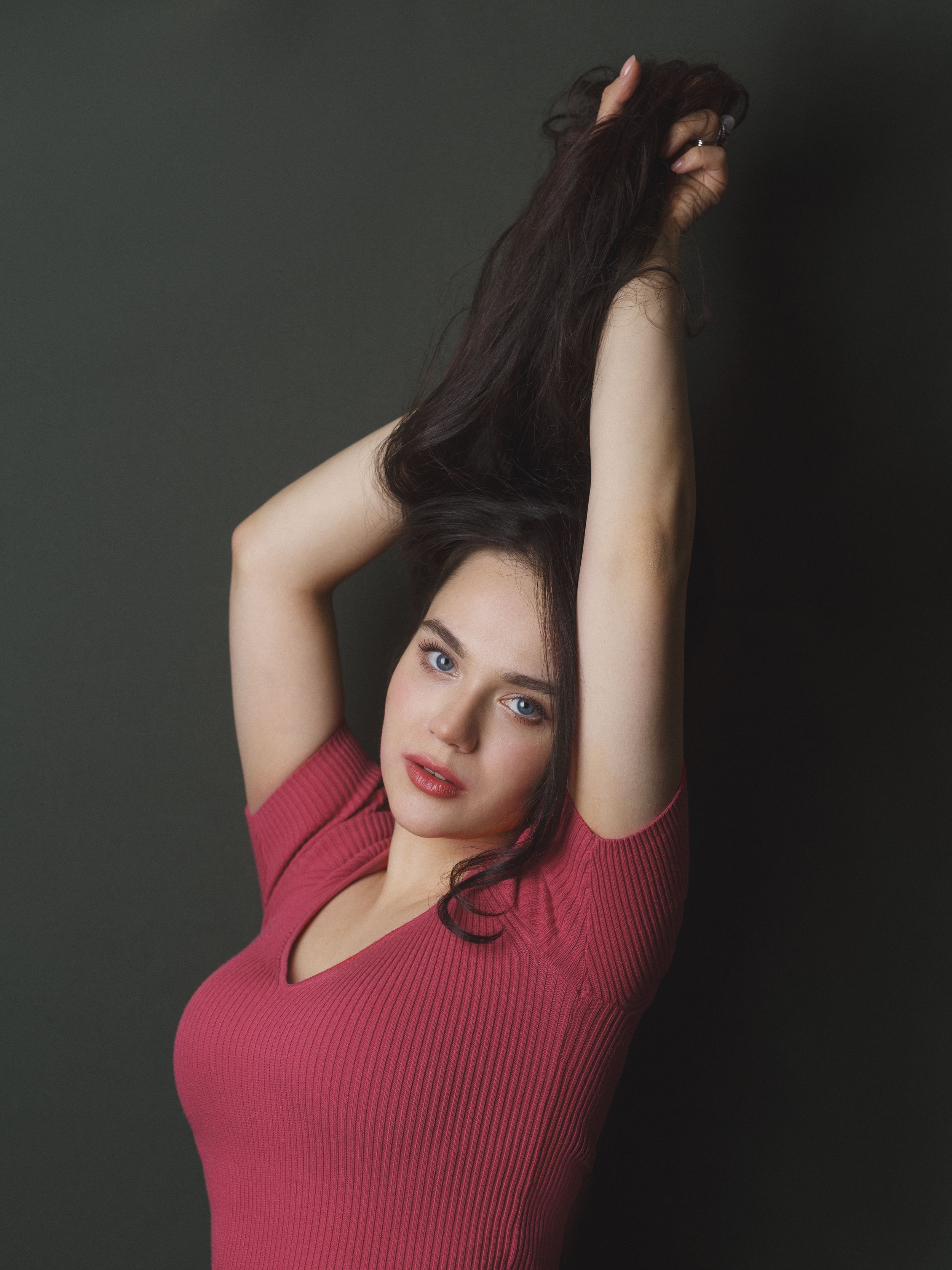 Красивая девушка, серые глаза, открытый взгляд, длинные волосы, студия , импульсный свет, фарфоровая кожа, Оксана Ведмеденко