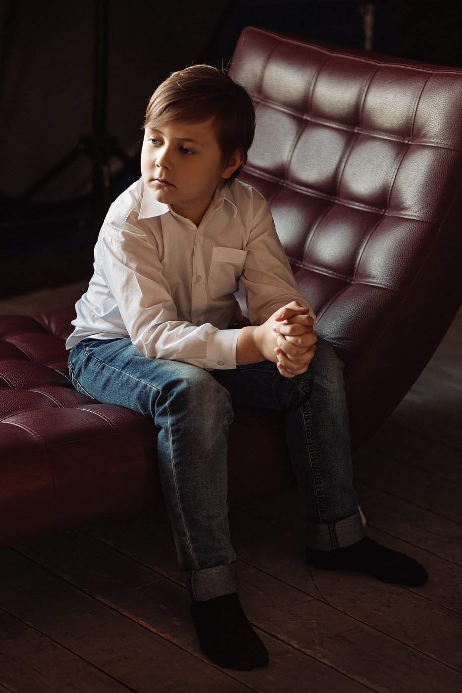 Мальчик, сын, парень, ребенок, коричневый, рубашка, кресло, портрет, рука, лицо, глаза, Ангелина Косова