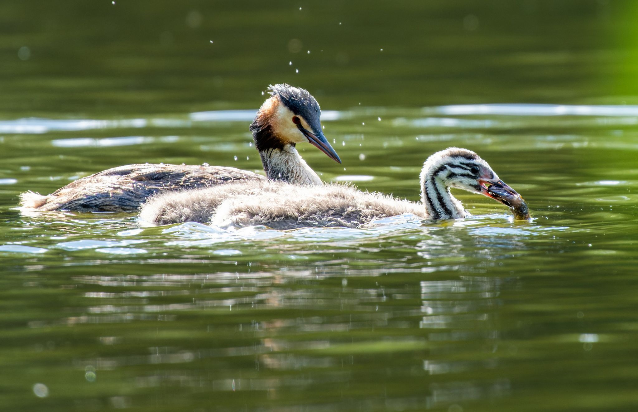 При чем в не самых ожидаемых местах. Это чудесное семейство и процесс кормления удалось запечатлеть в парке останкино. Берега близкие, так что и качество получше вышло )