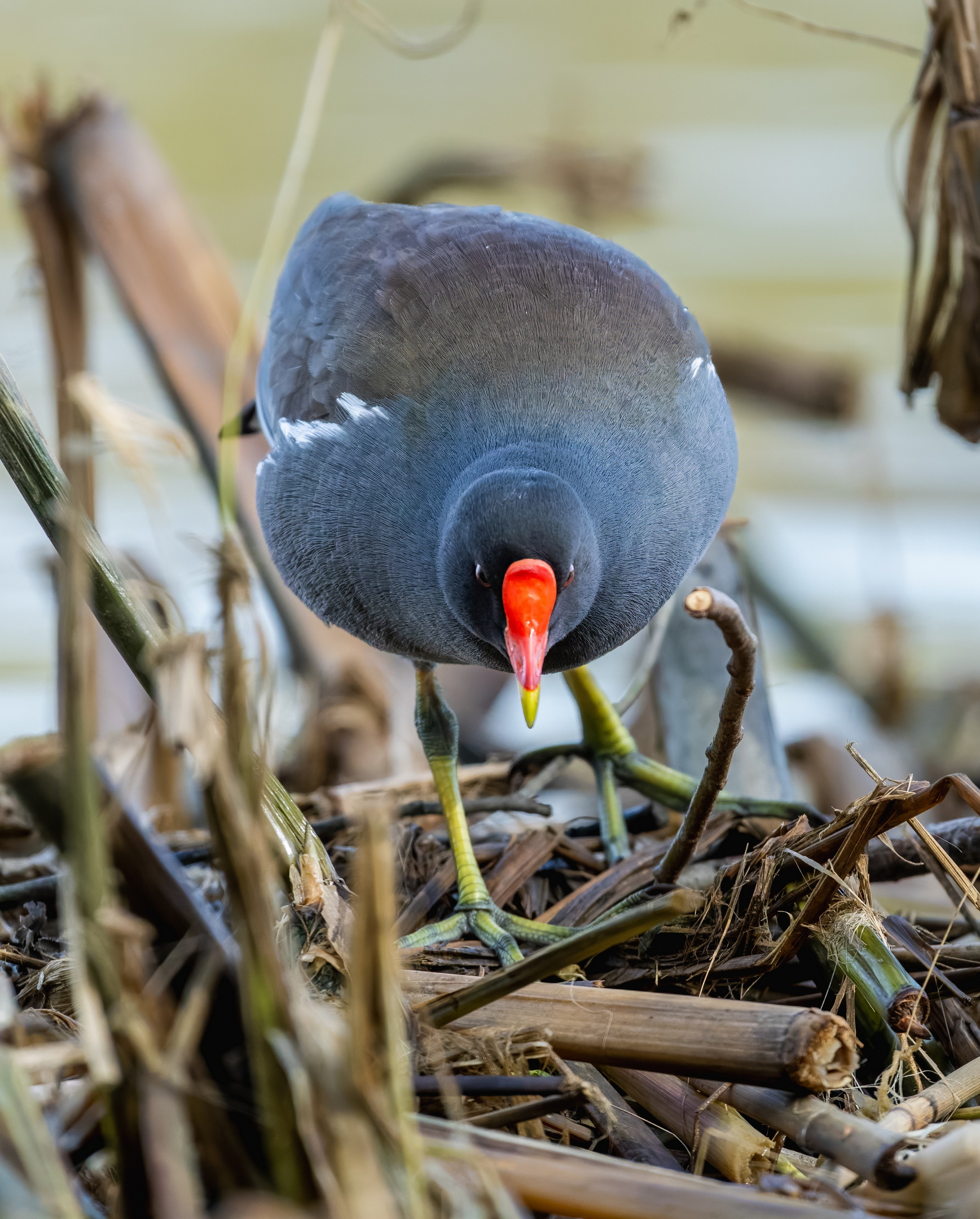 Константин, композиция сфокусирована на птице — анфас удачно передаёт характер вида. Яркий клюв и контраст оперения с фоном работают как визуальные акценты без перегруза.