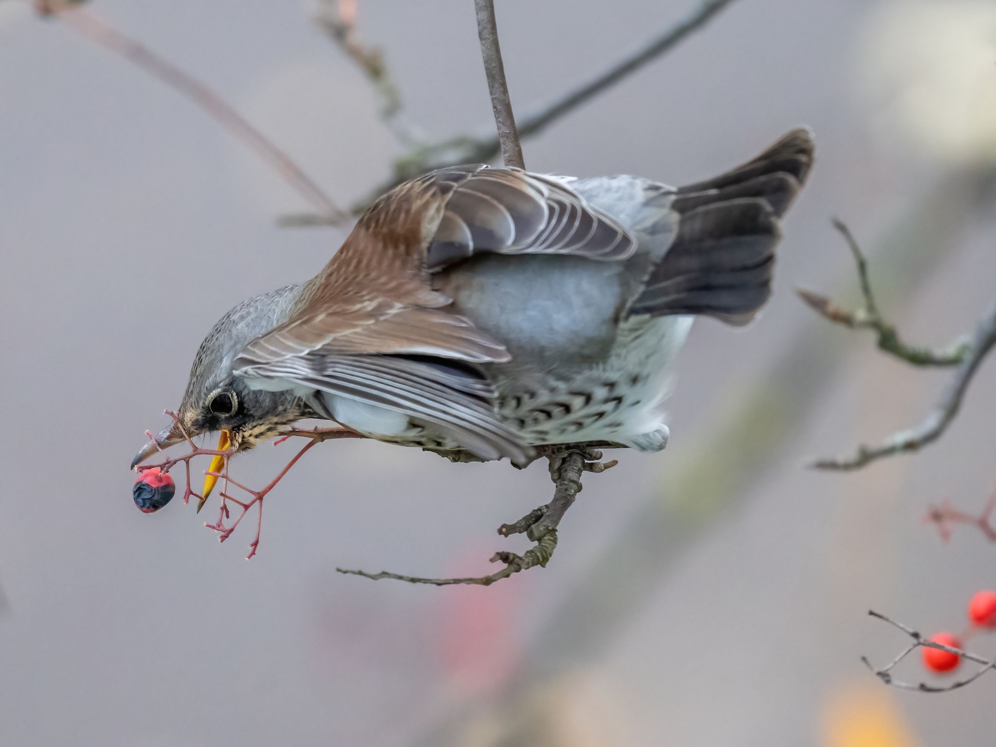 Дождался таки. Долго рябинушка под балконом от плодов тяжелела. А я хотел фотоохоты не выходя из дома ?