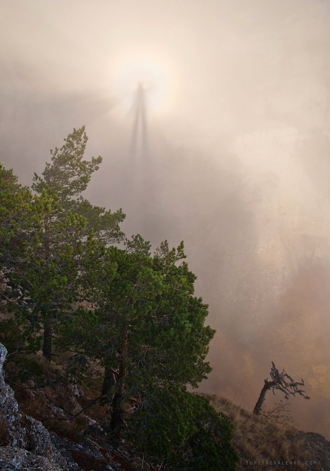 прямо напротив источника света. Наблюдатель должен находиться на горе, а