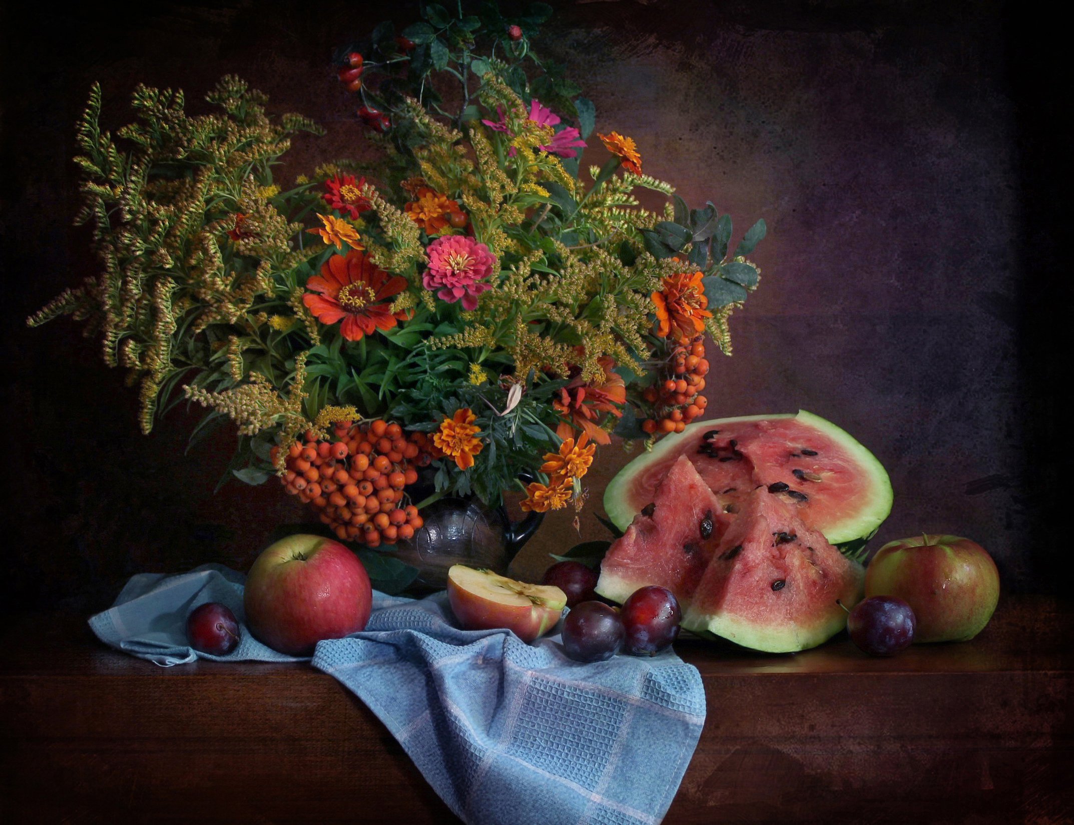 натюрморт, осень, цветы, арбуз, фрукты, Ковалева Светлана
