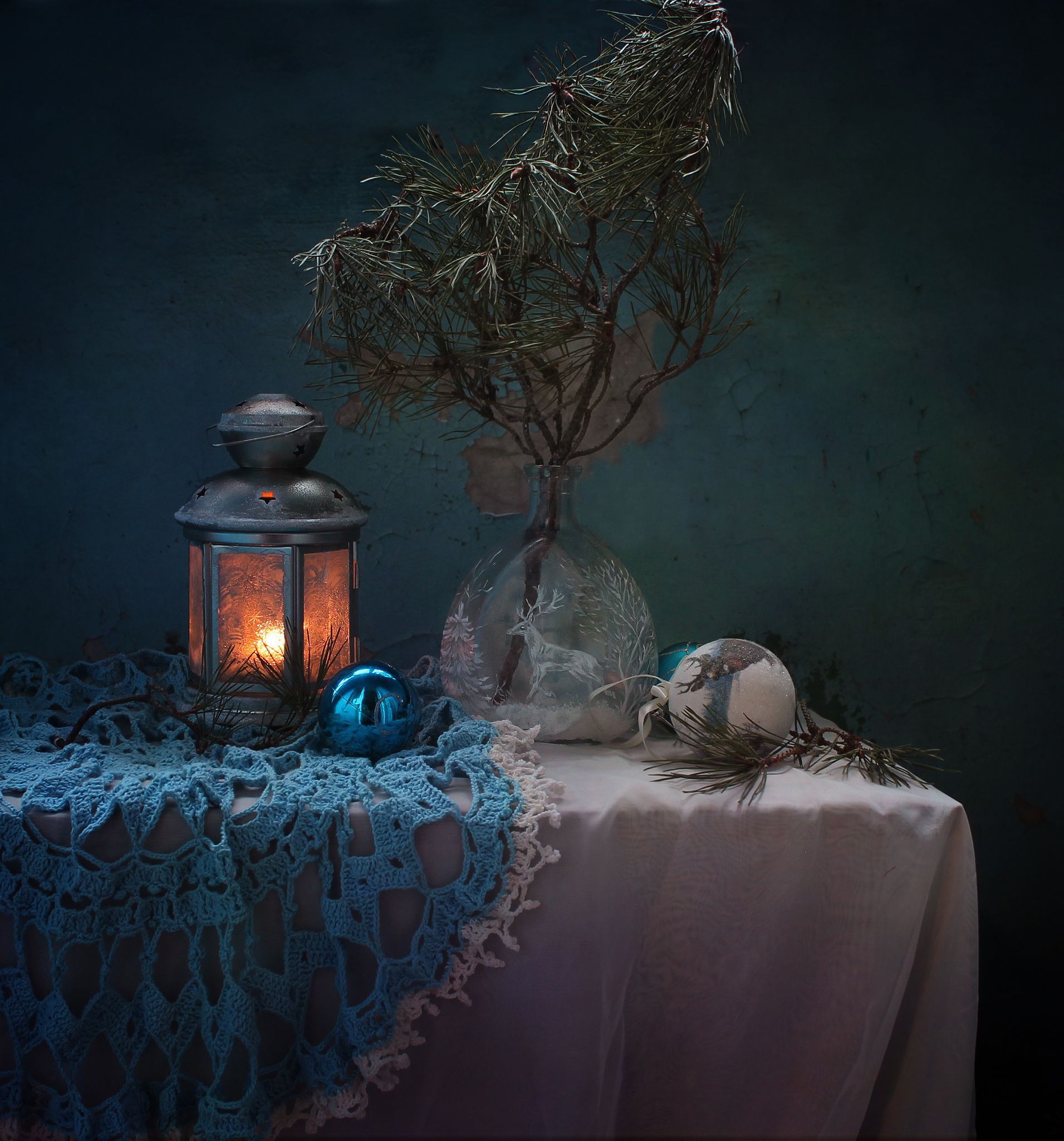 натюрмортновый годоленьфигуркаелкаукрашенияфонарик