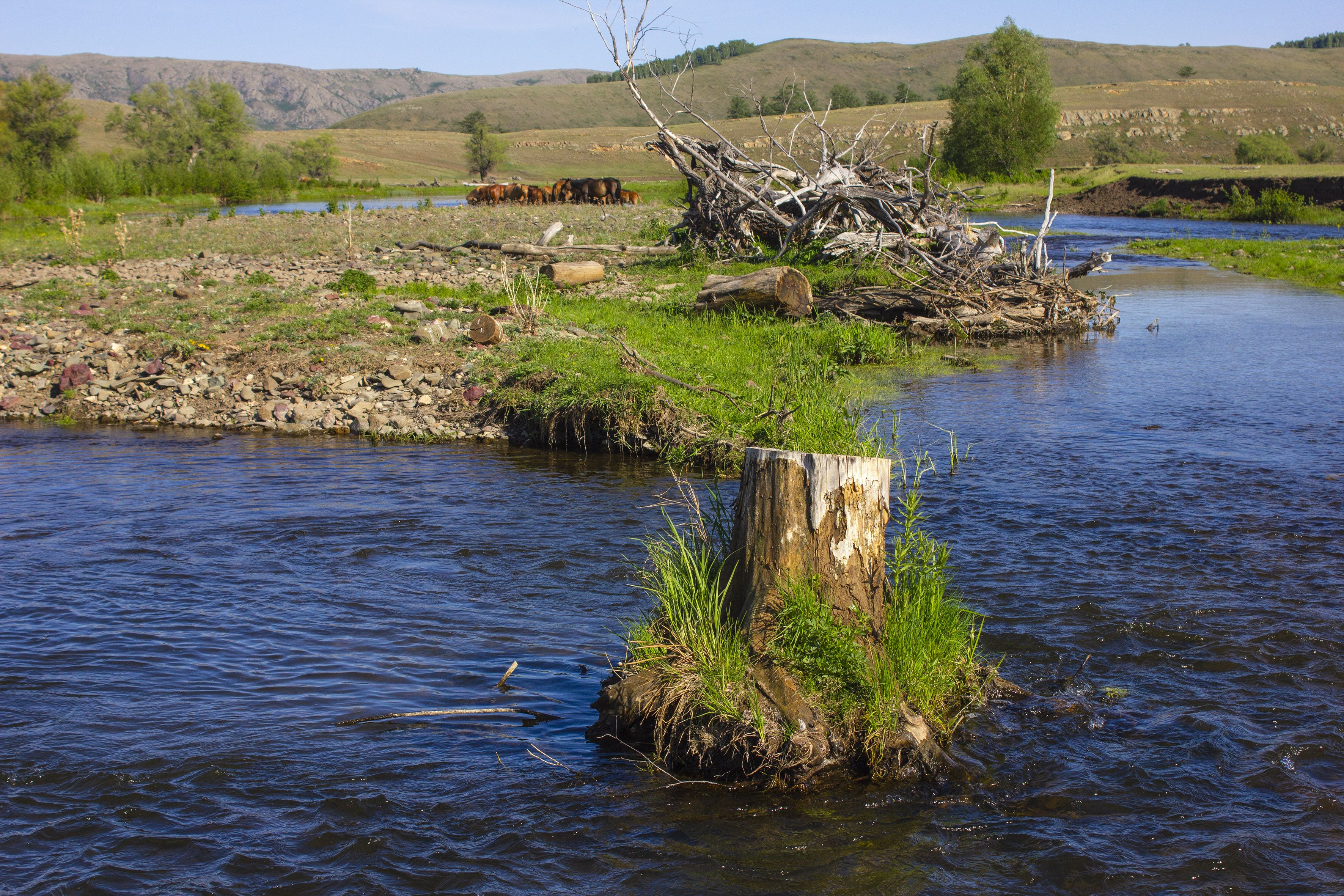 природа, весна,пейзаж, пень, река, лошади, небо, южный урал,, Александр Кожухов