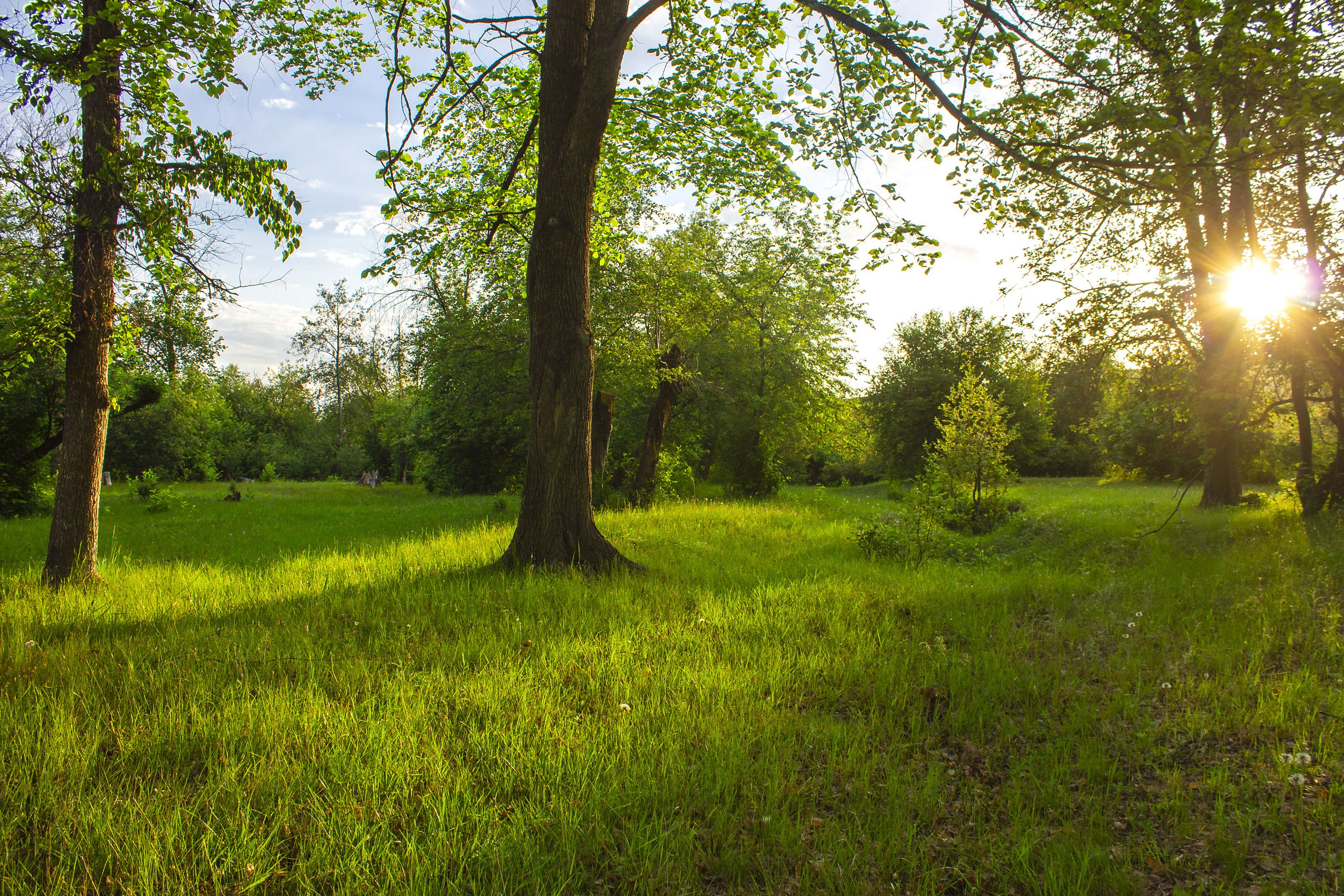 пейзаж, природа, лес, деревья, трава, солнце, утро,, Александр Кожухов